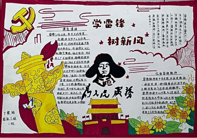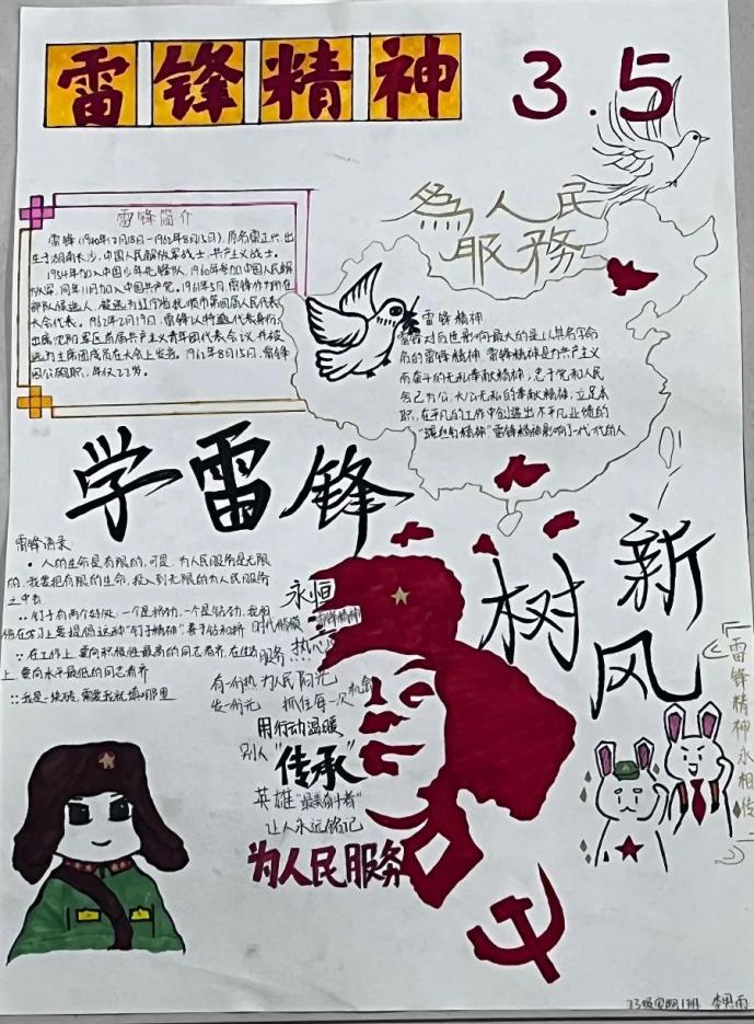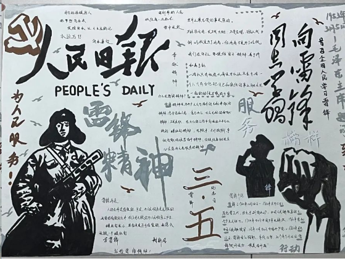 雷锋精神是的宝贵精神财富,每一份手抄报陈述着雷锋同志的光辉事迹,阐述着雷锋精神的时代内涵,号召着大家向雷锋同志学习。让我们一起学习雷锋助人为乐、热爱祖国、勤俭节约、无私奉献用实际行动去传承雷锋精神去感染别人!
