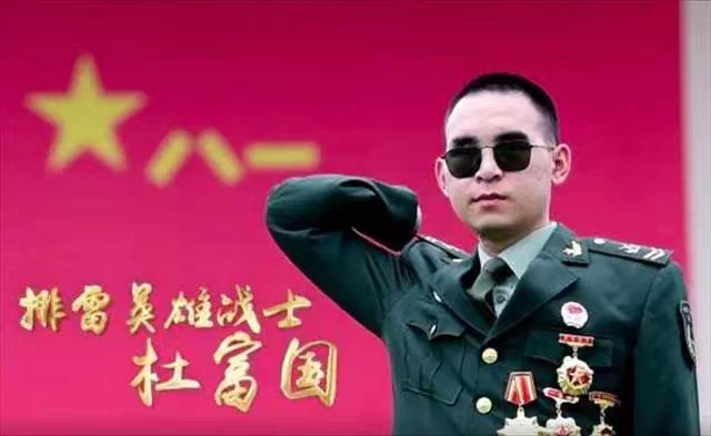 杜富国,扫雷英雄,2015年毅然投身边境扫雷行动,为国泰民安倾注热血,危难时刻总挺身而出,高呼“让我来”。2018年,排雷作业突遇爆炸,他英勇护佑战友,自己却不幸失去双眼与双手。面对巨变,杜富国不屈不挠,积极康复,历经三载涅槃重生,重返战位,以钢铁意志诠释中国军人的无畏与担当。其英勇事迹,闪耀着对党忠诚、为国奉献的红色光芒。