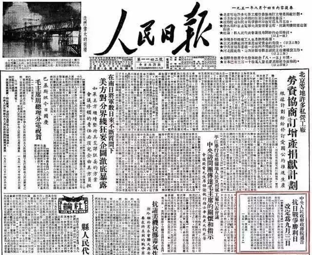 1951年8月13日政务院发布了通告,通告中指出:查日本实行投降,系在1945年9月2日日本政府签字于投降条约以后。故抗日战争胜利纪念日应改定为9月3日。故将“抗战胜利纪念日”定在了每年的9月3日。
