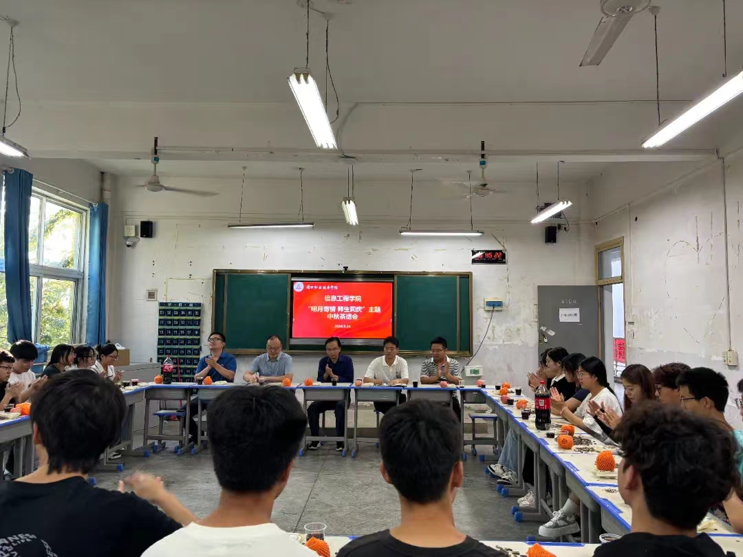 为庆祝中秋节,增进师生之间的感情,弘扬中华传统文化,信息工程学院于9月16日下午在6104教室举办了中秋茶话会。党总支书记宋良鹤、院长黄宇达、副院长楚书来、学管办主任张矿伟以及全体23级辅导员出席了此次茶话会,23级学生代表也参加了此次活动,茶话会由张矿伟主持。