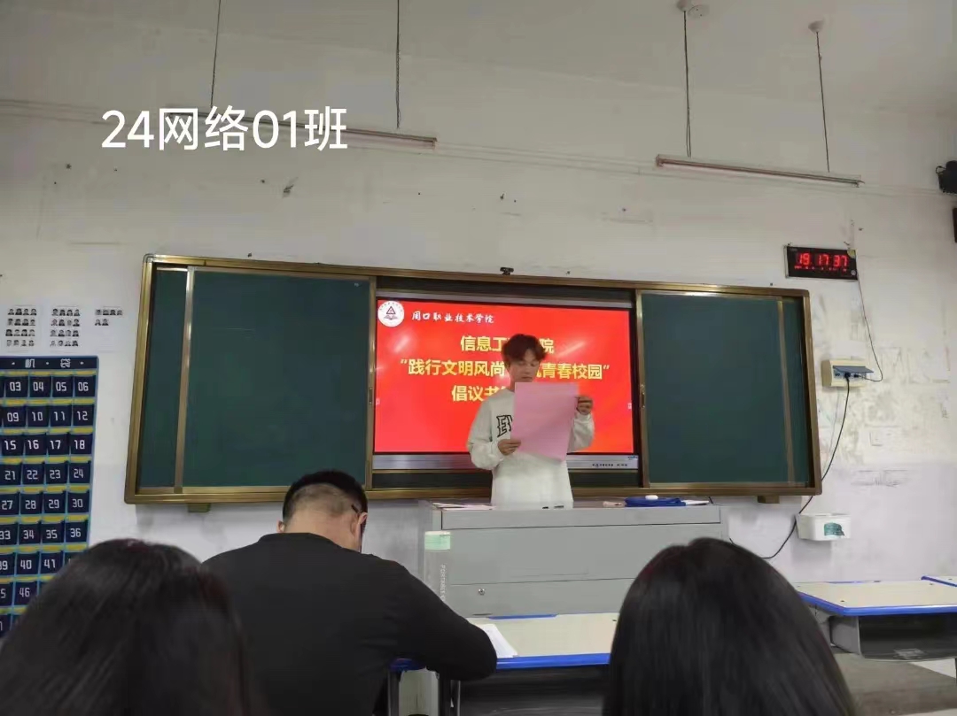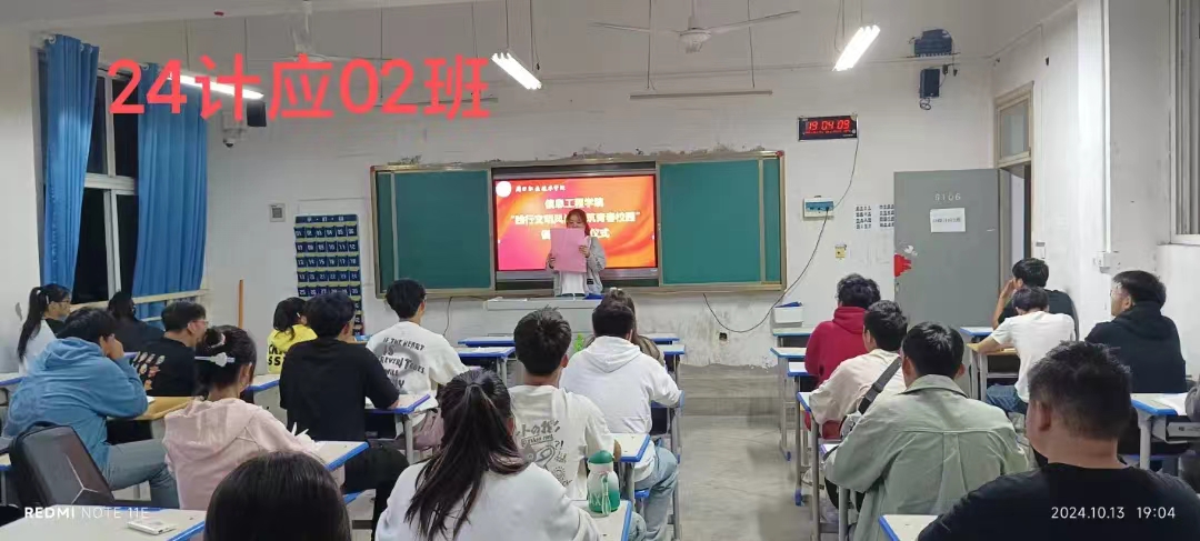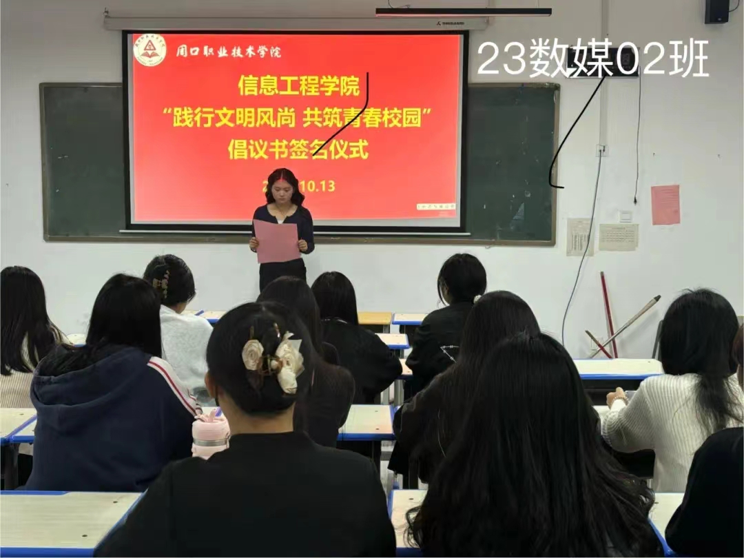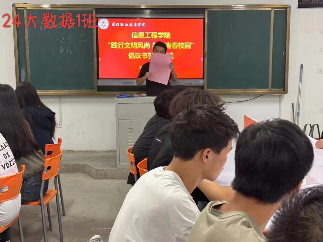 严以修身,慎独自律,为进一步促进同学们自觉践行文明礼仪,提高自身文明礼仪修养,积极营造优良育人系风、校风。10月13日,信息工程学院在各班级内举办了“践行文明风尚 共筑青春校园”倡议书签名仪式。仪式上,各班代表宣读了倡议书,号召全体同学从自身做起,从小事做起,争做文明风尚的传播者和实践者。
