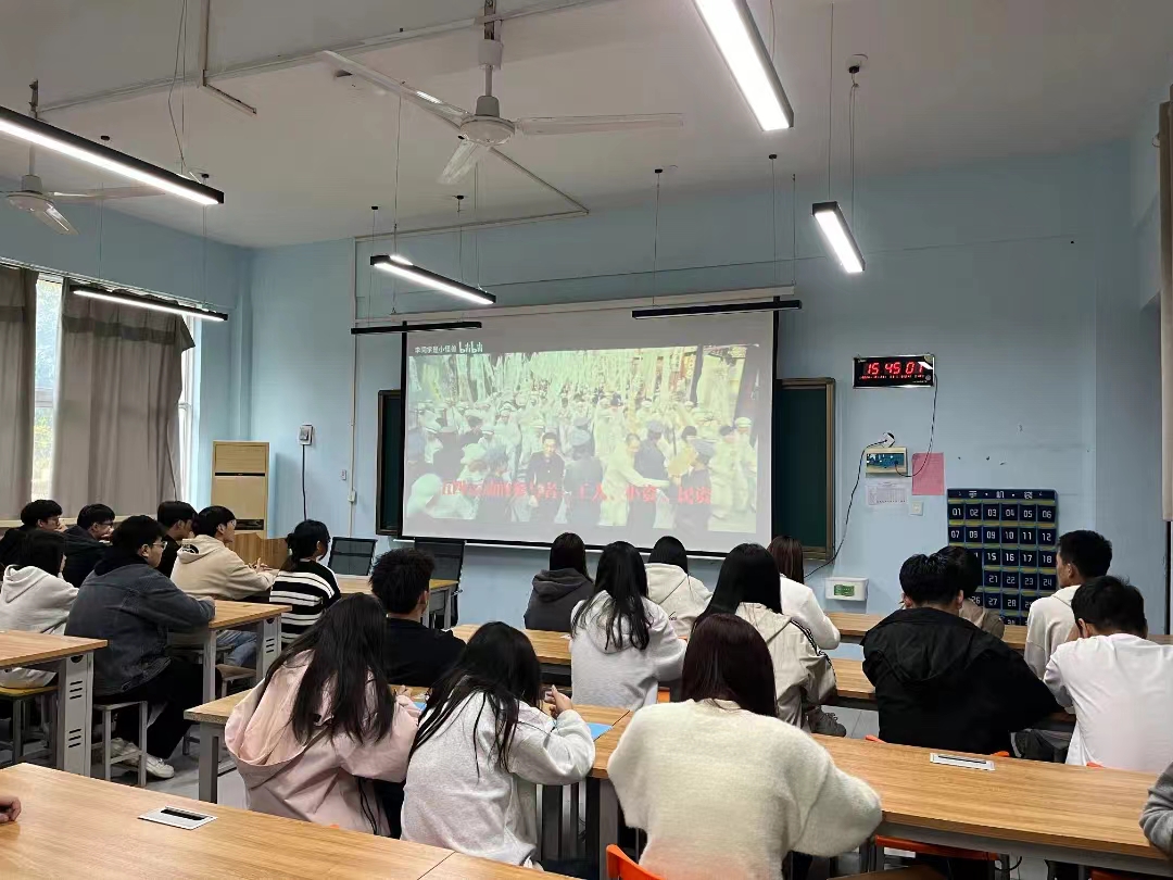 主题党日活动中,学生支部书记楚书来阐释了红色故事在中国革命和建设发展历程中发挥的作用,带领大家重温了党的历史,回顾了入党初心。在播放的视频中,有闻一多先生慷慨激昂的演讲,丝毫不惧国民党特务的威胁;中焦裕禄同志在兰考县工作期间,以坚强的毅力、对党和人民事业高度忠诚,带领全县干部群众治理“三害”的感人画面;中国共产党领导人民为赢得民族解放与日寇浴血奋战的英雄业绩等等。观看过程中,同学们在看到革命战士为了新中国的未来舍弃家人,背井离乡,奋勇抗敌,为国捐躯时,不少人为之感到心疼,眼角的泪水不自觉的流下。这也反映出了共产党人、爱国人士和千千万万中华儿女在建立新中国过程中所展现的艰辛奋斗、甘于奉献、自强不息的民族精神,以及大无畏的牺牲精神和革命乐观主义精神。