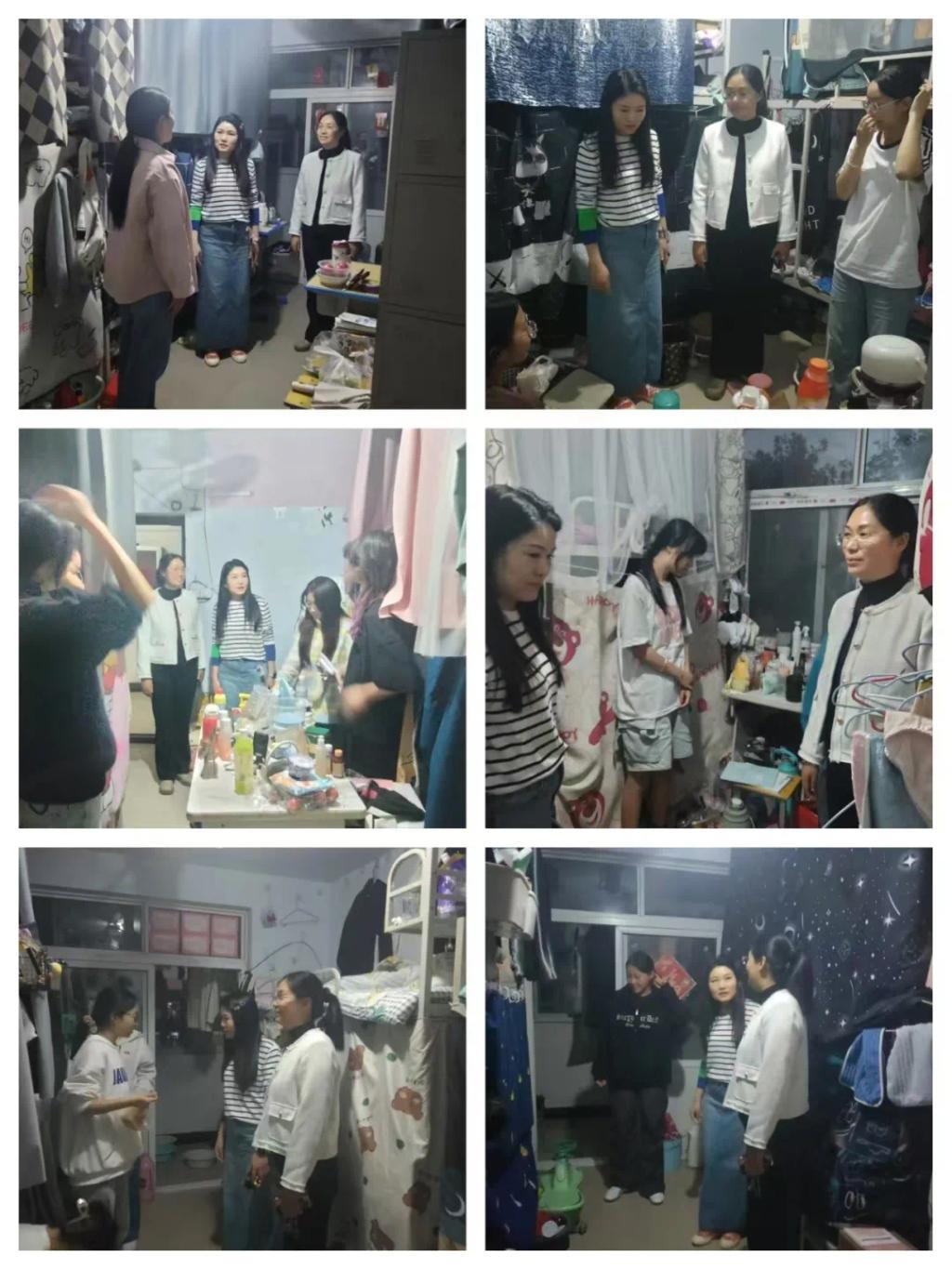 在检查过程中,宋书记与老师们逐一排查了宿舍中的大功率电器、刀具等潜在危险物品,确保宿舍环境的安全无虞。老师们对床铺、地面、物品摆放和学习氛围进行了细致的检查,并特别强调了宿舍安全卫生标准,提醒学生严禁使用违规电器,以消除安全隐患。宋书记还亲切地与学生交流,了解他们的思想动态和学习生活情况,并特别提醒学生要早睡早起,养成良好的生活习惯。