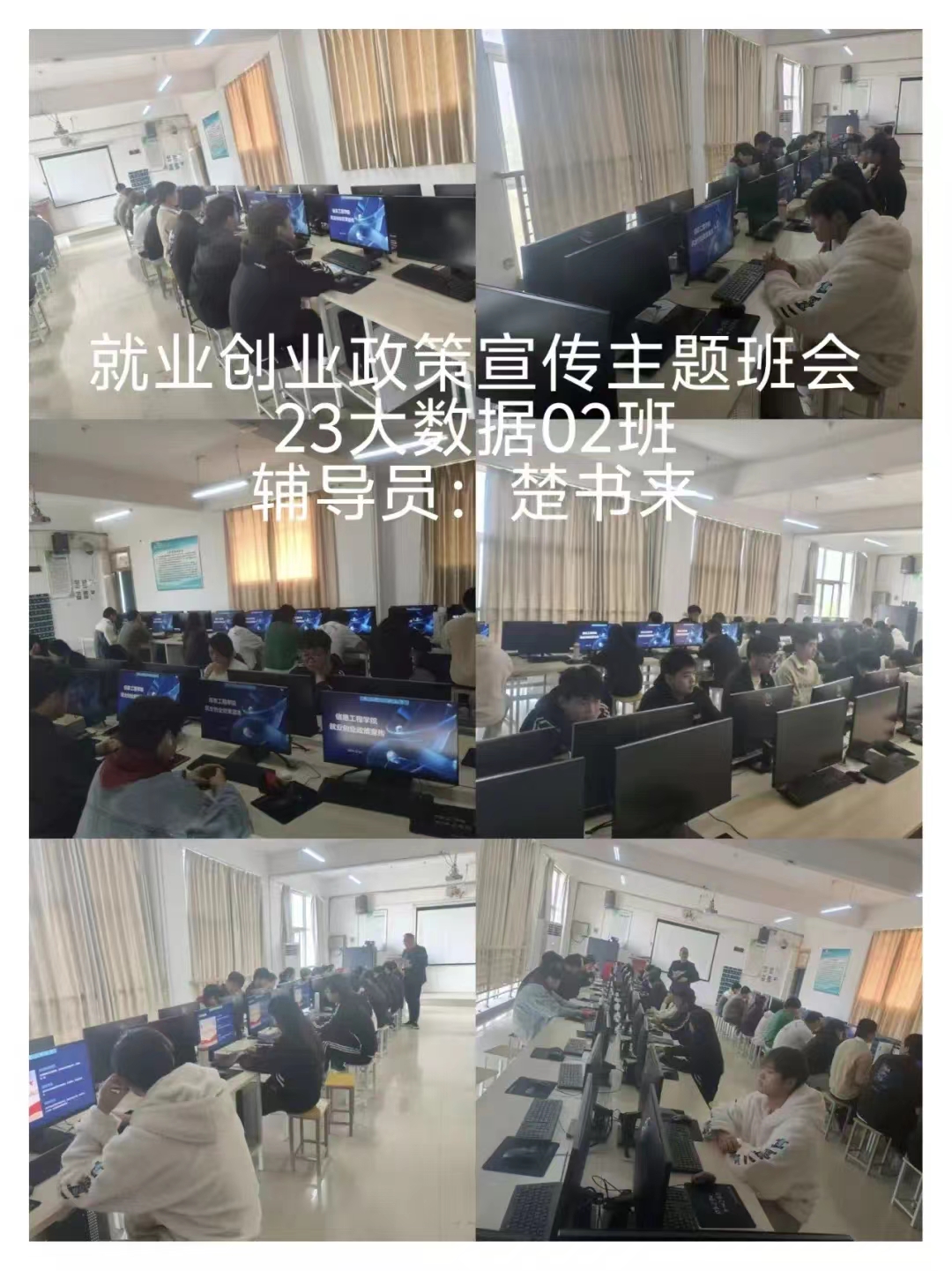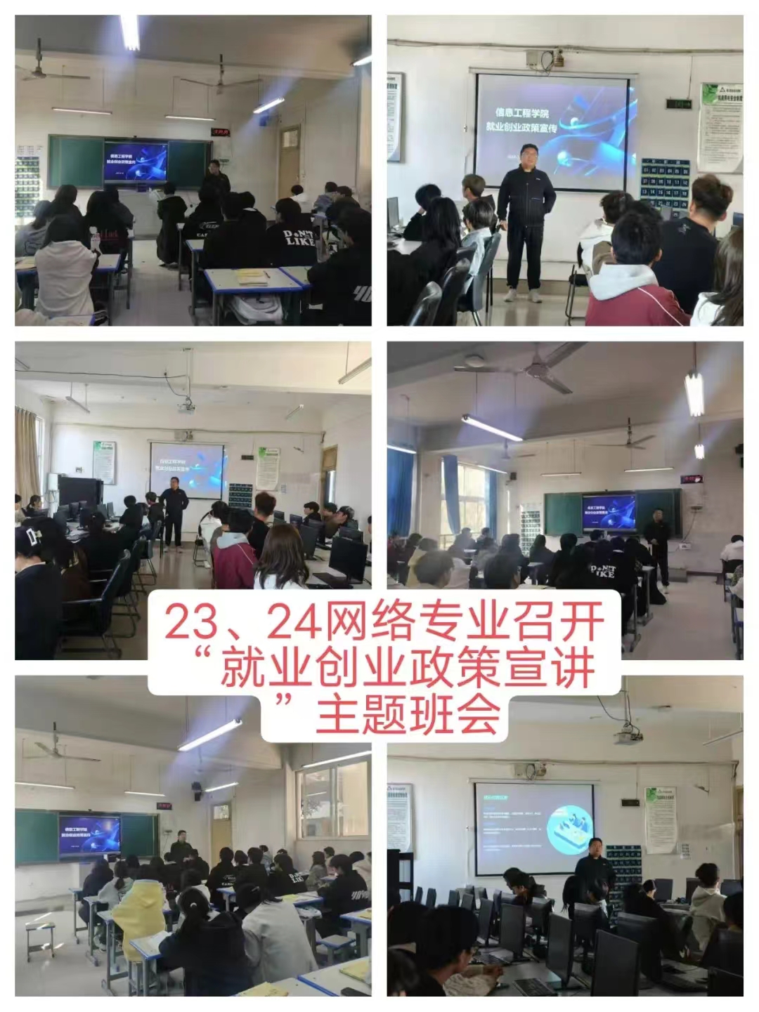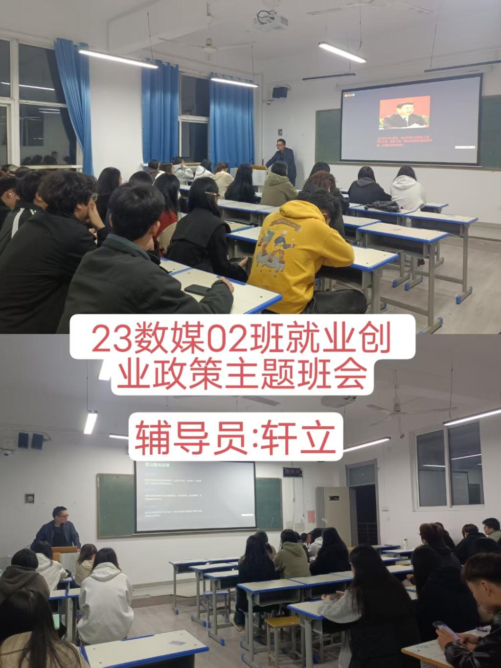在主题班会上,辅导员老师们详细向同学们介绍了就业创业政策,引导同学们认清当前就业形势、转变就业观念,牢牢把握各类双选会等招聘时机,告诉同学们利用好就业创业政策和自身优势,为实现早就业、就好业创造条件,提醒同学们要多关注班级群通知,关注各企业和院校的通知。鼓励同学们深入基层、扎根基层、服务基层,努力将青春绽放在人民最需要、最急盼的地方,成长成为有理想、敢担当、能吃苦、肯奋斗的新时代好青年。