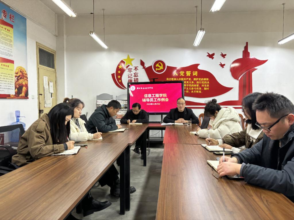 11月25日中午,在学院办公室6140,信息工程学院召开辅导员工作例会。党总支书记宋良鹤,副院长楚书来及23、24级辅导员参加了本次会议,会议由楚书来主持。