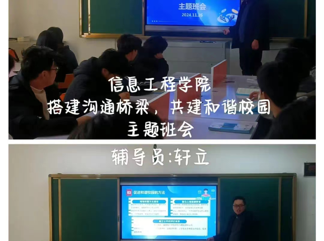 在本次“搭建沟通桥梁 共建和谐校园”的主题活动中,学院各班积极响应号召,精心组织了一系列丰富多彩的交流环节。通过开展师生面对面座谈会等多种形式的活动,这些举措不仅拉近了彼此的距离,也使得大家能够更加坦诚地表达自己的想法和建议,共同探讨如何进一步优化校园环境、提升教学质量等问题。
