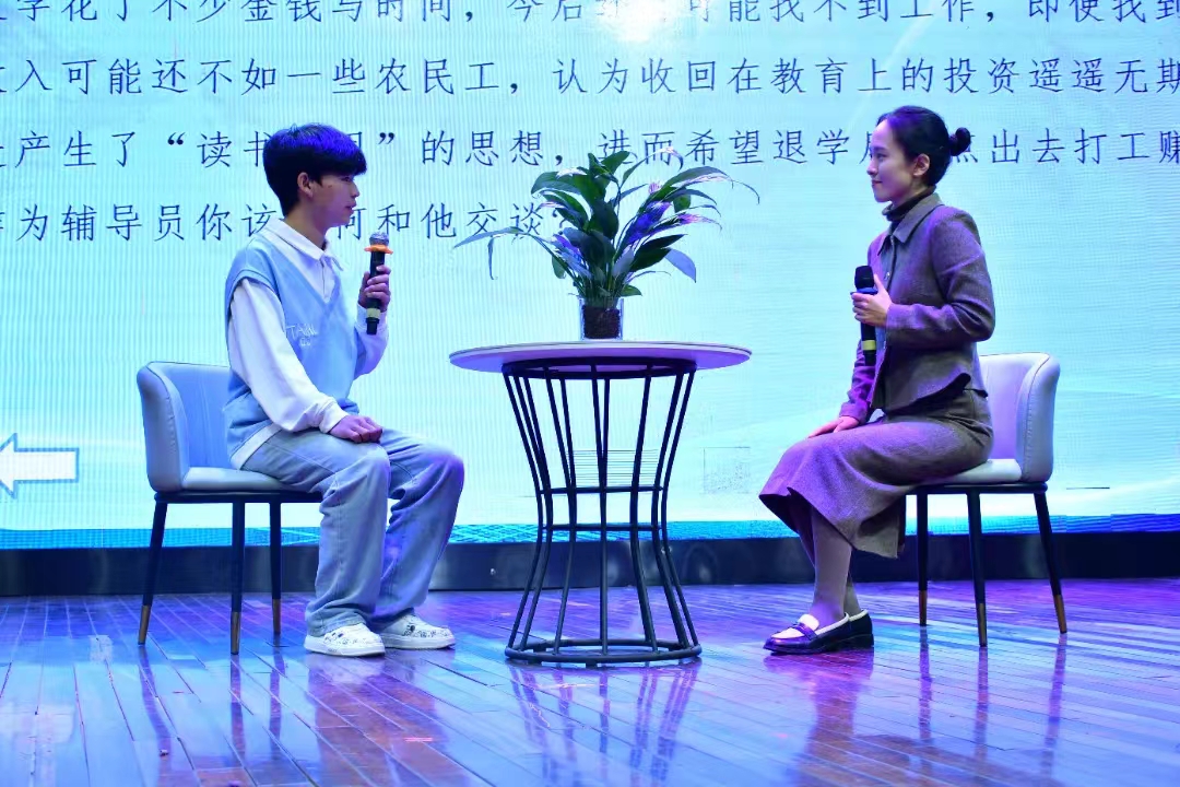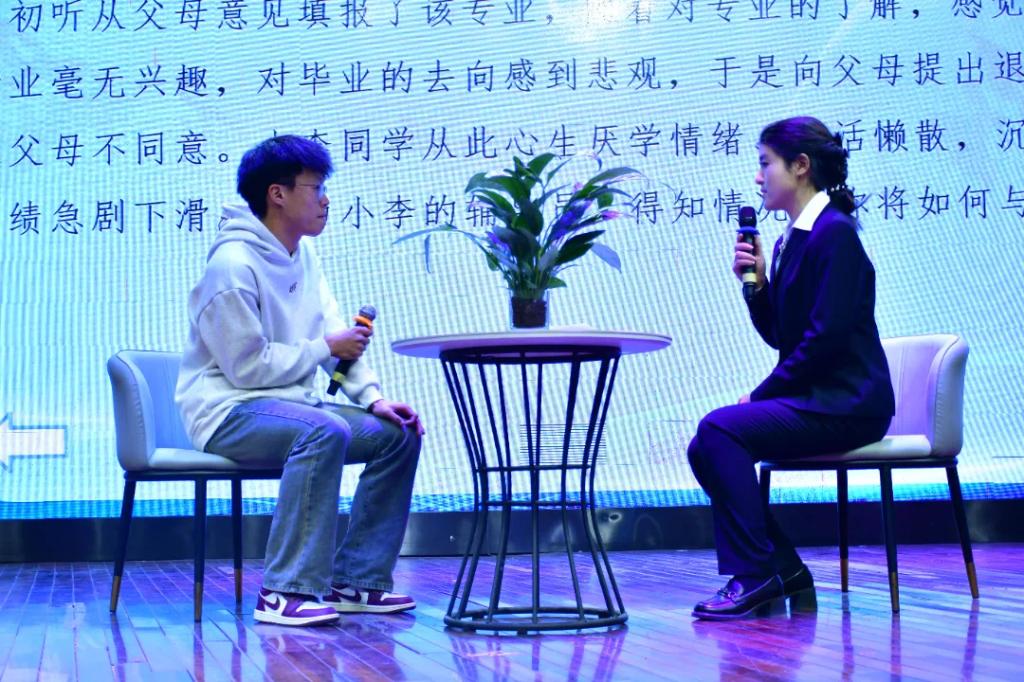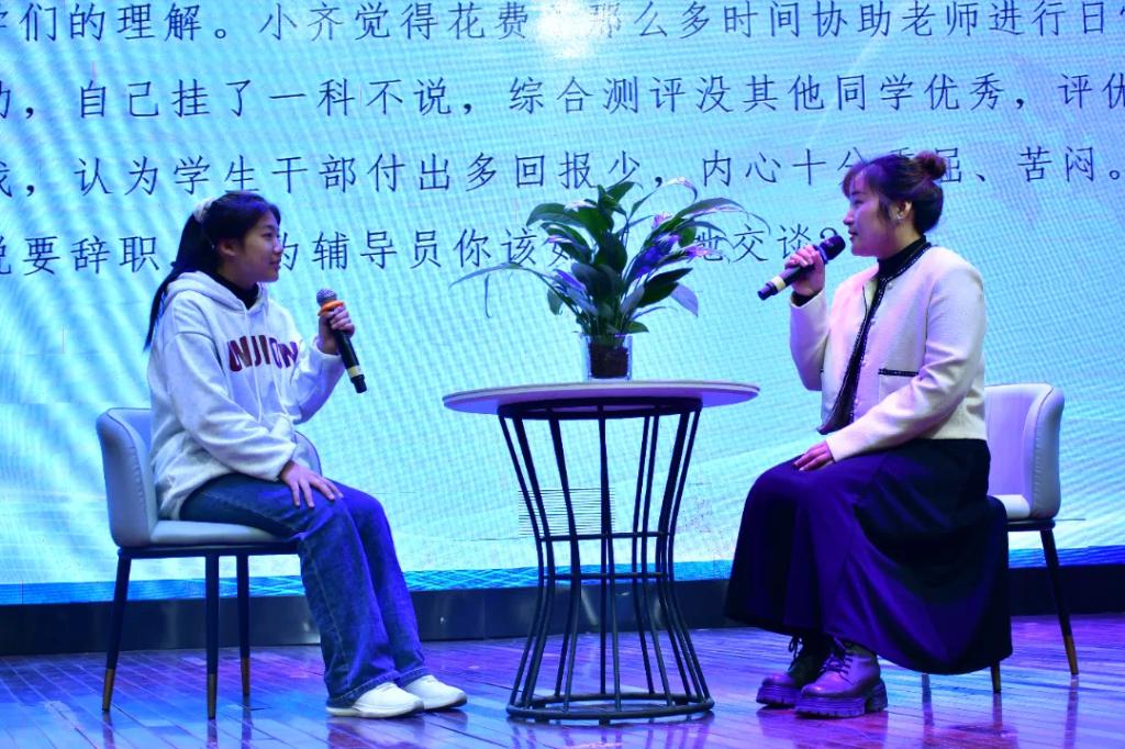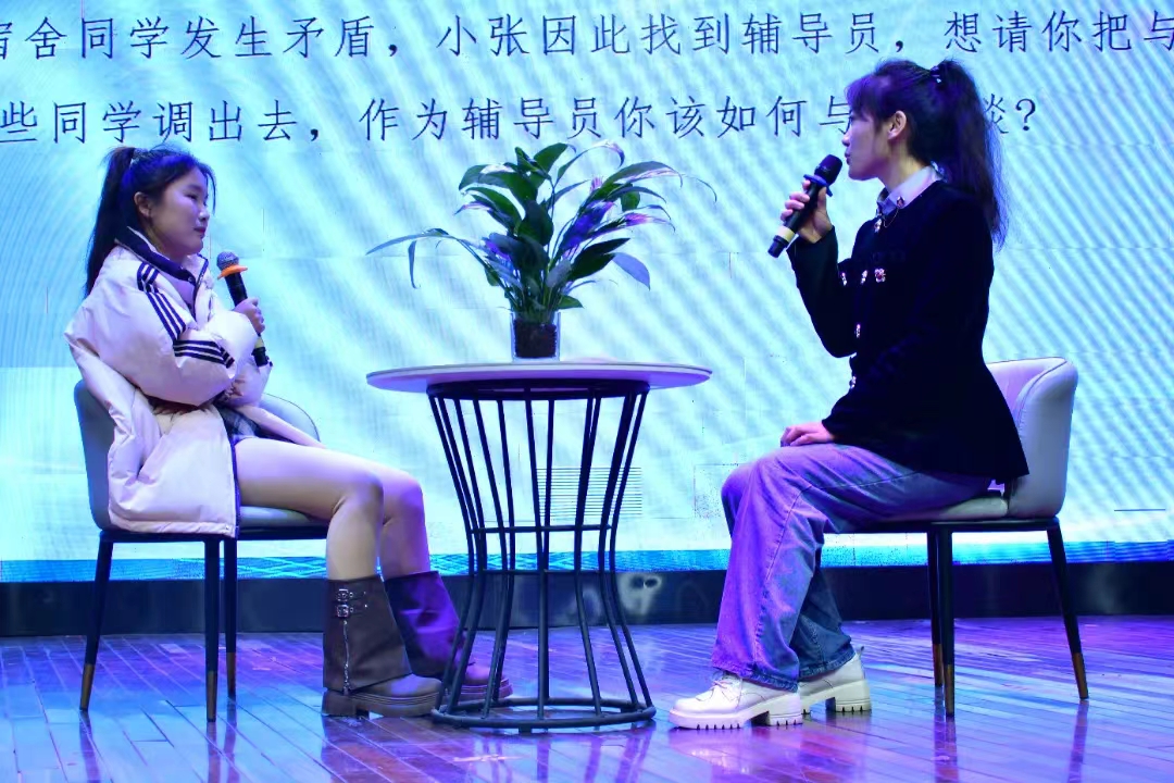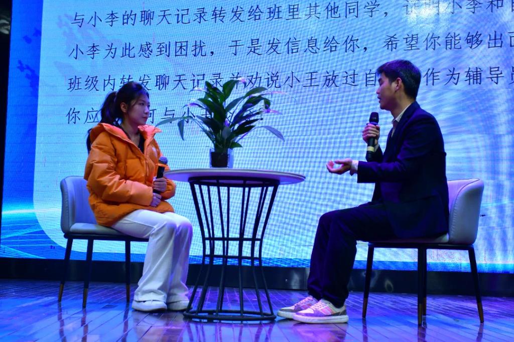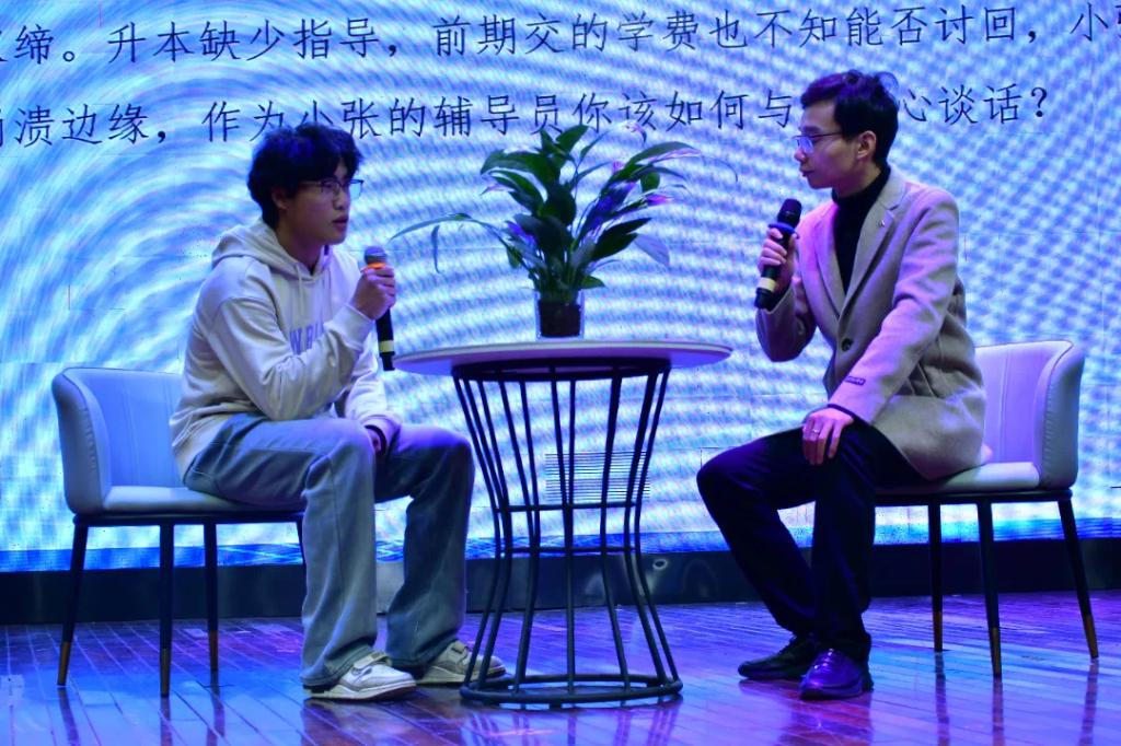 此次大赛由案例研讨和谈心谈话两个环节组成。选手两两分组,采用“我提问,你回答”的方式进行。辅导员案例研讨旨在通过实际案例的分析和讨论,提升辅导员的专业能力和实践水平。在研讨中,辅导员们通过分析真实发生的案例,学习如何有效识别、分析并解决学生在学习、生活和心理等方面遇到的问题。这不仅帮助他们掌握不同情境下的应对策略,还培养了灵活处理复杂情况的能力,从而更有效地帮助学生解决实际问题。