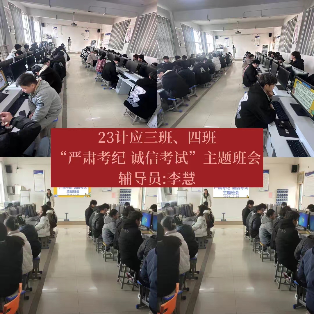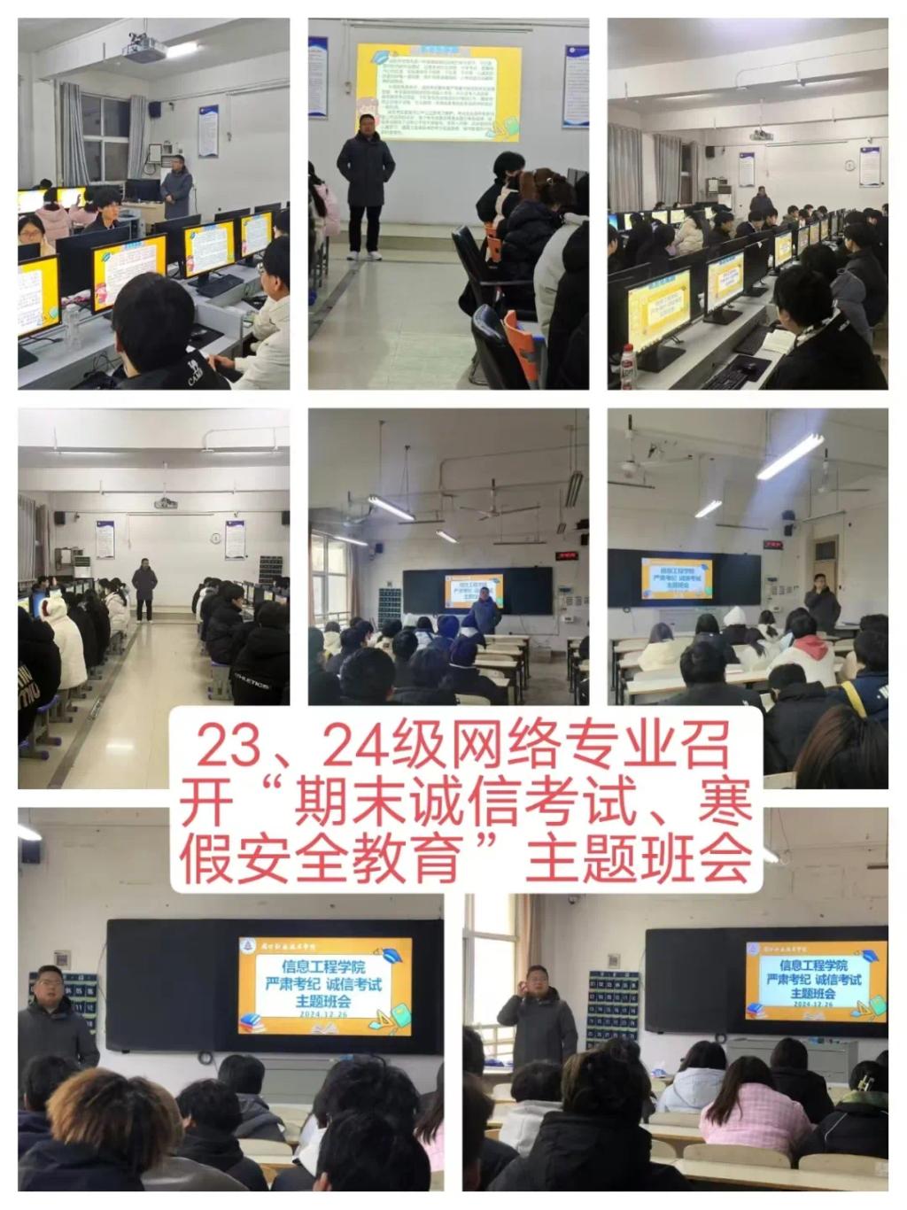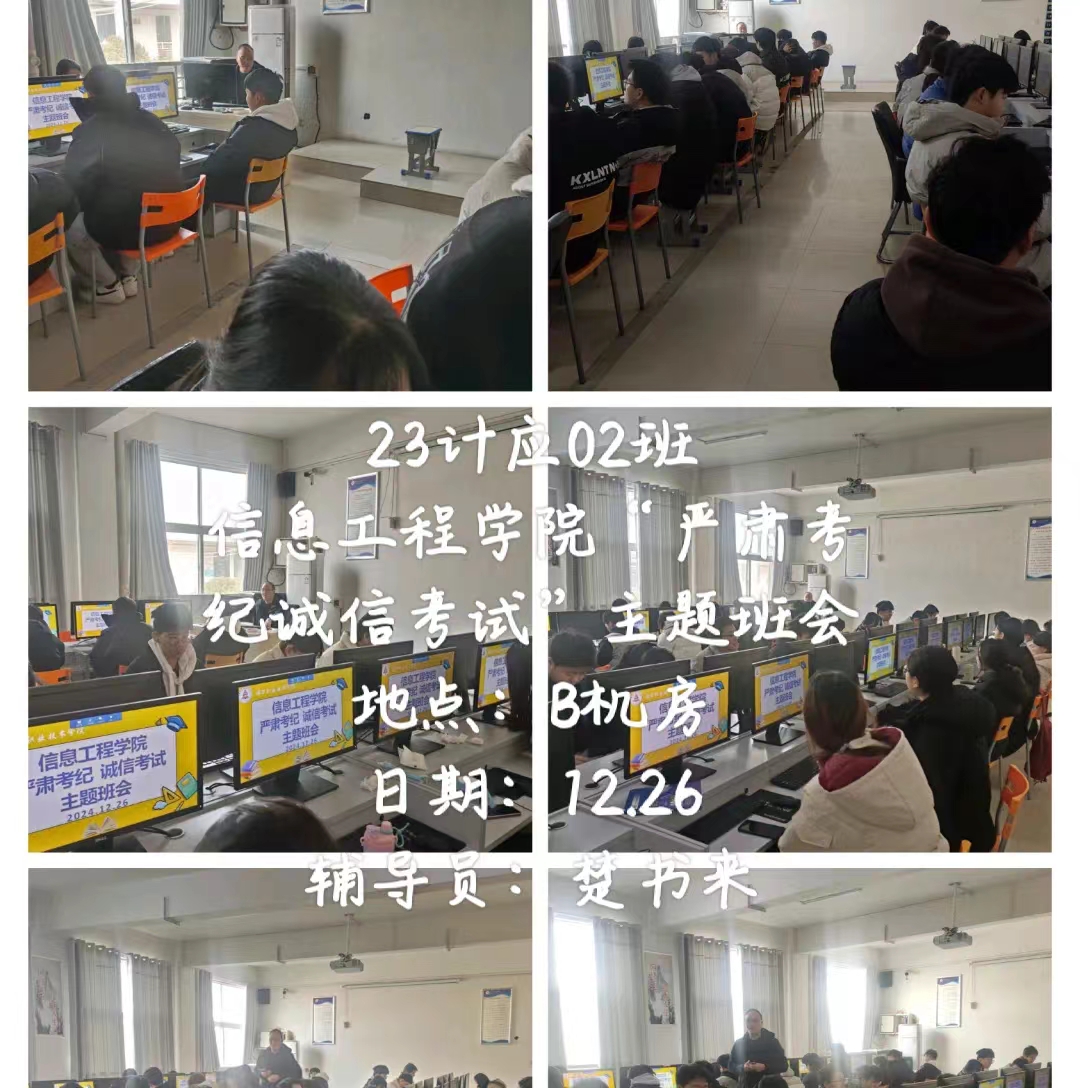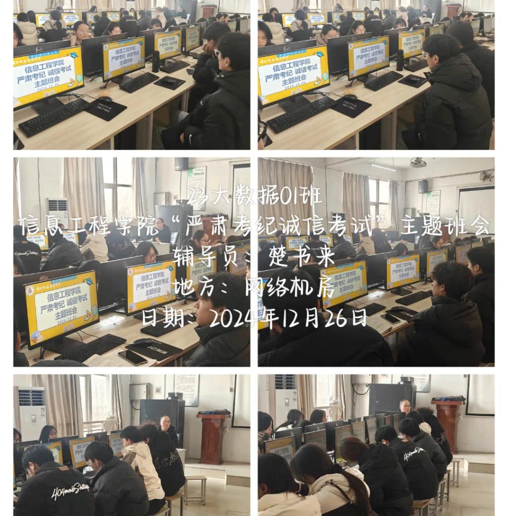 临近期末,信息工程学院各班辅导员陆续开展了以“严肃考纪,诚信考试”为主题的班会。本次班会旨在强化学生的诚信意识,营造公平公正的考试环境,确保每一位同学都能在良好的氛围中完成学业考核。