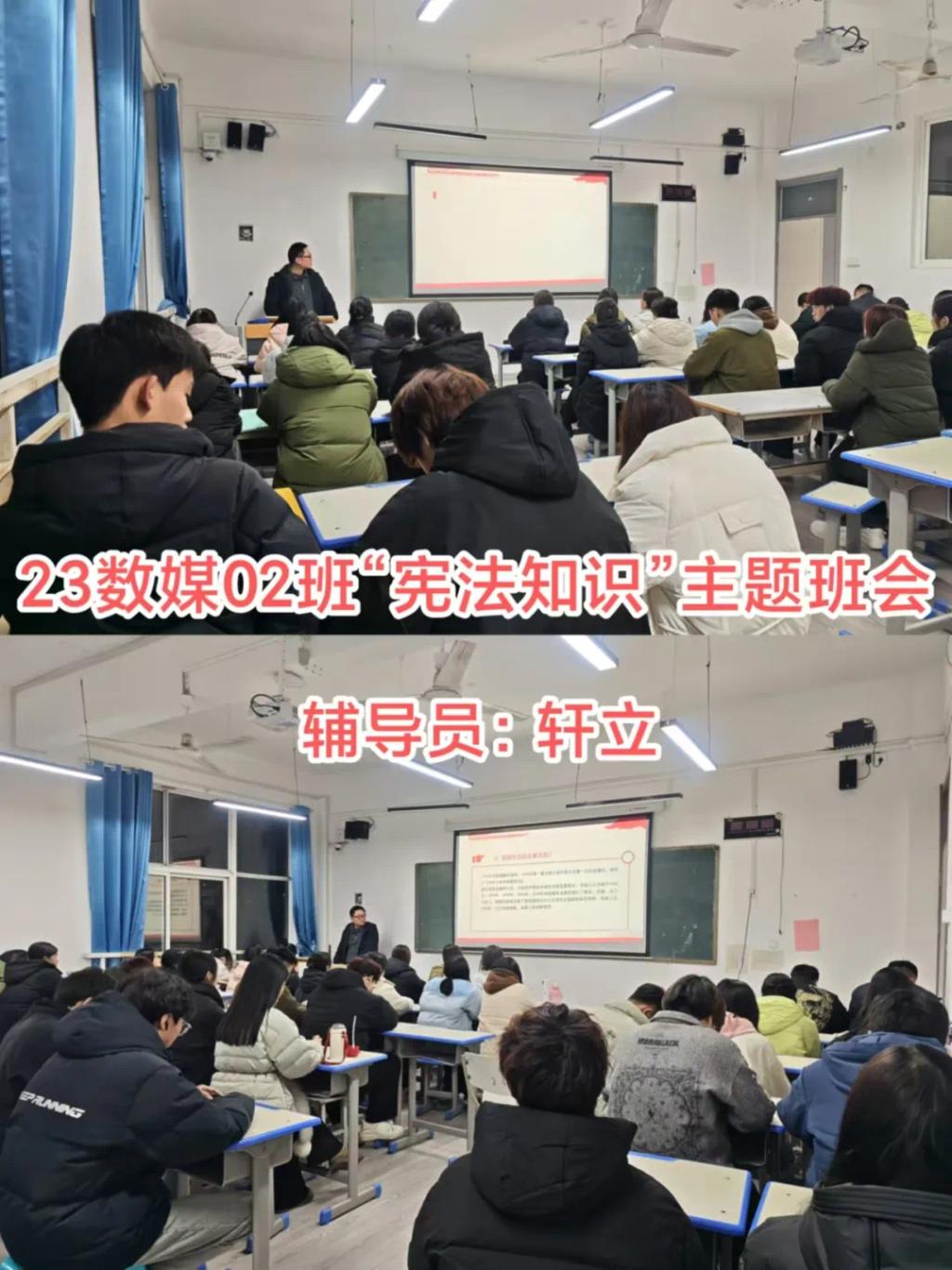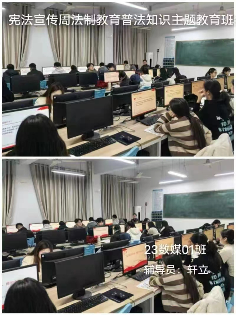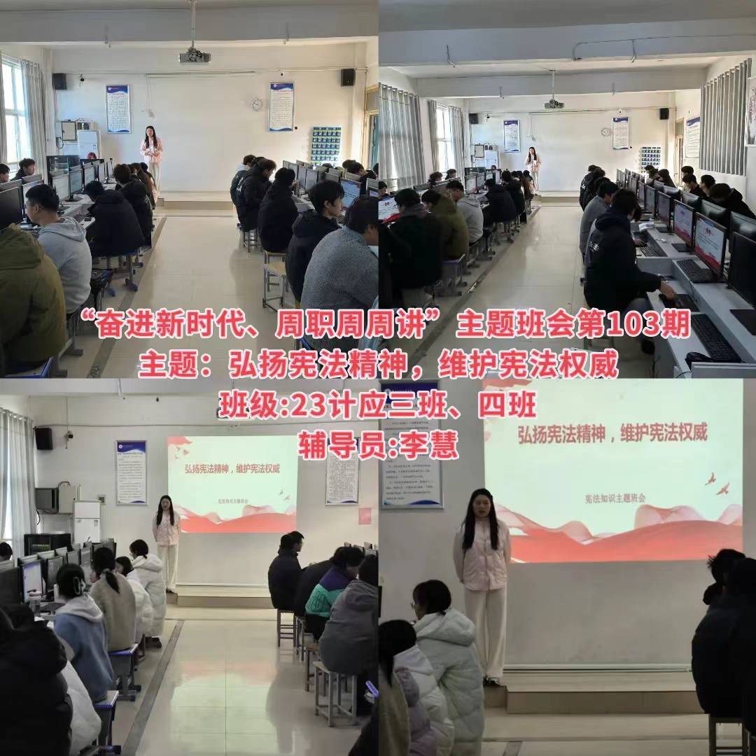在开展班会中,各个班级的辅导员带领同学们共同学习了宪法知识,深入了解宪法的历史、基本原则以及公民的基本权利和义务等内容。通过生动的案例和通俗易懂的讲解,让同学们对宪法有了更加直观和深刻的理解。随后,还特别强调了宪法在日常生活中的作用和意义,引导同学们认识到宪法不仅是国家的根本大法,更是保护公民权利的重要法律武器。整场班会让同学们深刻体会到宪法就在我们身边,它是社会稳定和谐的基础,也是每个人幸福生活的守护者。