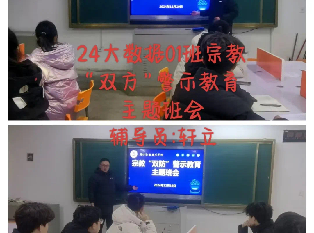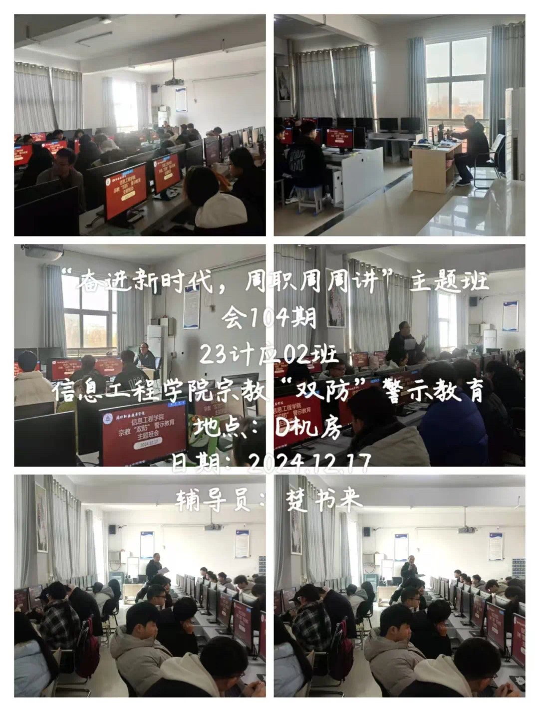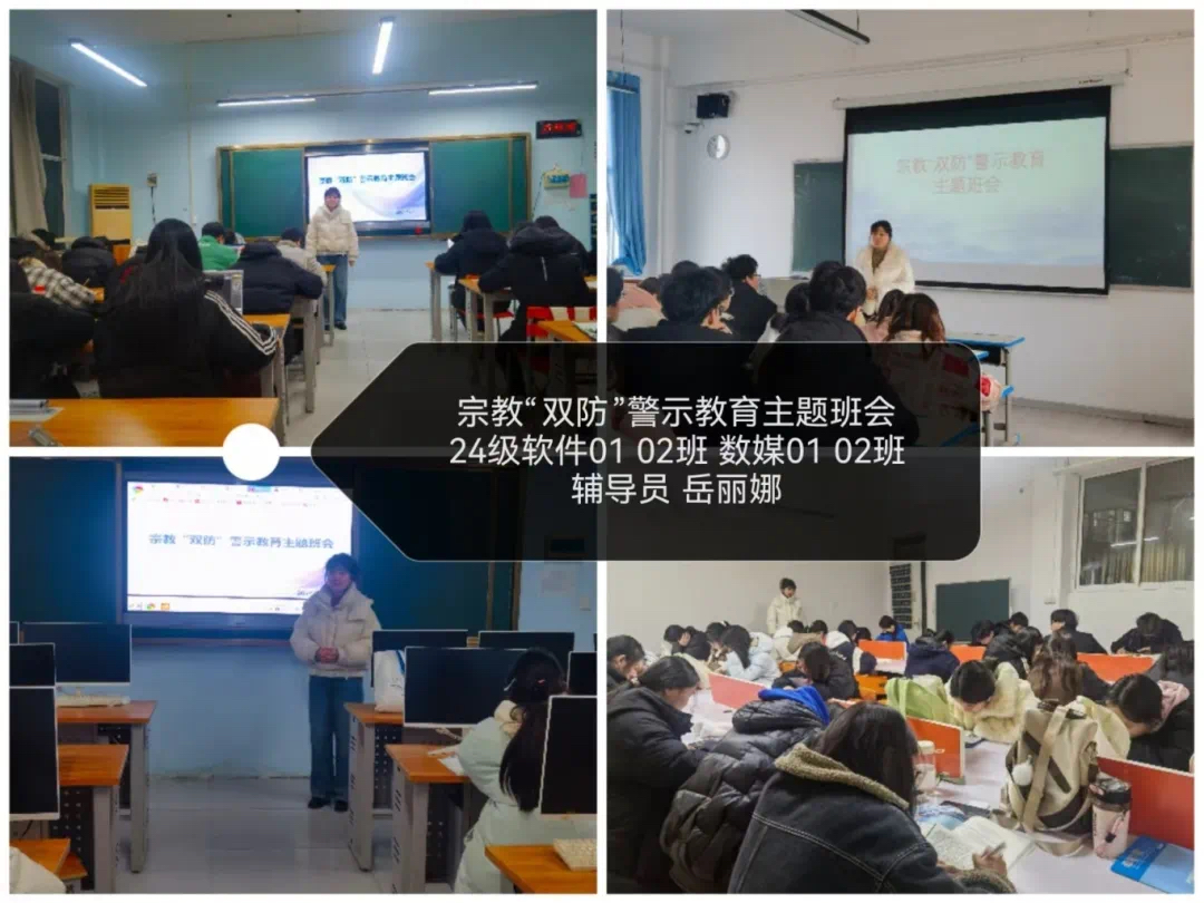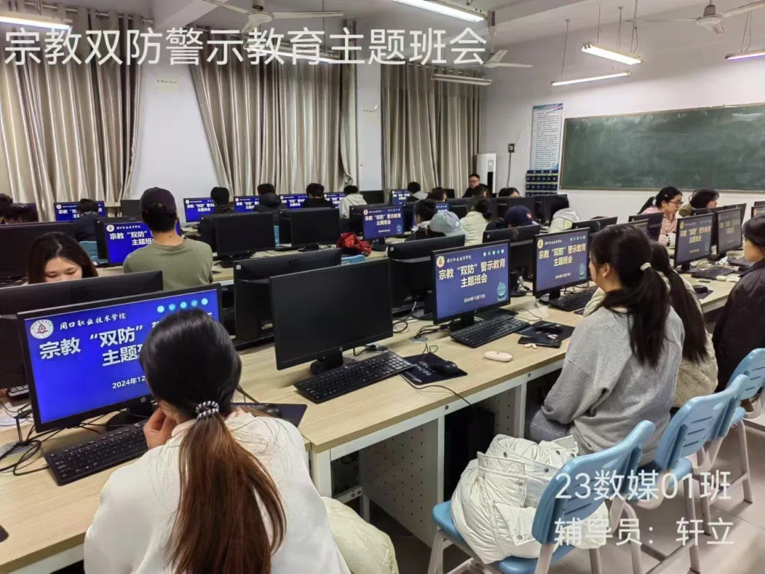 为了帮助同学们充分认识到非法宗教活动的危害,防范和抵御非法宗教势力向校园渗透,全面正确贯彻落实党的宗教政策,引导青年学生自觉抵制宗教渗透及传播。信息工程学院开展“奋进新时代,周职周周讲”第六十九期----民族宗教政策法规宣传教育主题班会。