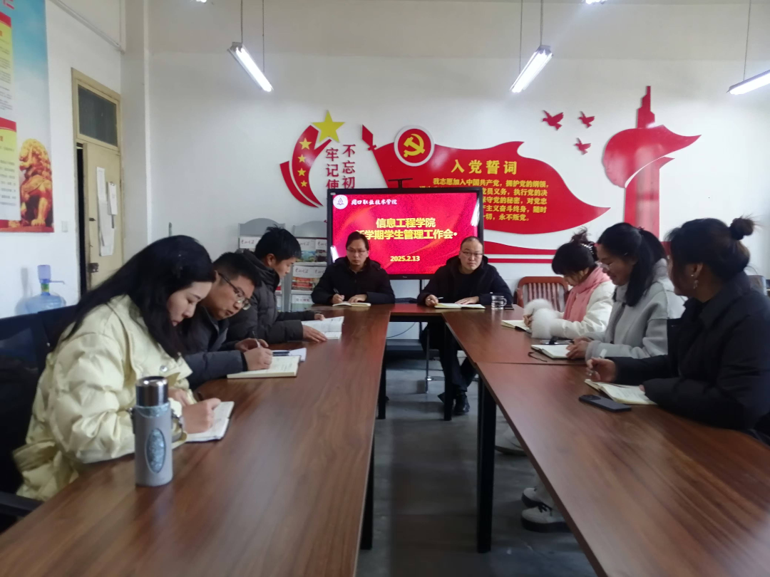 2月13日中午,在学院办公室6140,信息工程学院召开新学期学生管理工作会。党总支书记宋良鹤,副院长楚书来,学管办主任张矿伟及23、24级辅导员参加了本次会议,会议由楚书来主持。