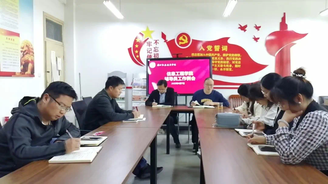 4月7日中午,在学院办公室6140,信息工程学院召开辅导员工作例会。党总支书记宋良鹤,副院长楚书来,学管办主任张矿伟及23、24级辅导员参加了本次会议,会议由楚书来主持。