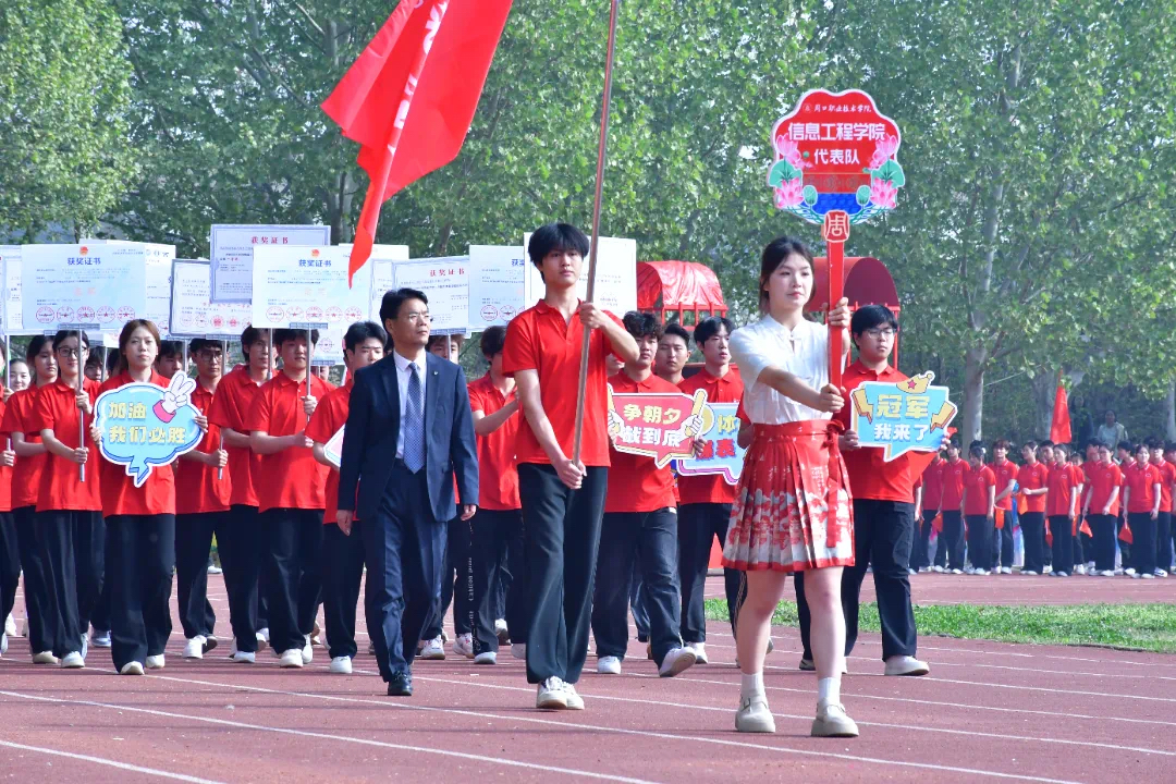 当信息工程学院的代表队迈着整齐划一的步伐进入赛场时,观众席中暴发出阵阵喝彩声。信工代表队队员们精神饱满,意气风发。舞蹈队员们则激情昂扬地跟随后方。她们的舞步整齐有力,动作流畅自然,每一个转身、每一次挥手都充满了青春的活力与动感。伴随着激昂的音乐,她们以独特的表演形式展现了信工学子积极向上的精神风貌和对未来的美好憧憬。在阳光的照耀下,队员们的笑容格外灿烂,她们用舞蹈表达着对运动精神的赞美和对团队荣誉的执着追求。信工学子们对在本次运动会中取得优异成绩充满了信心。