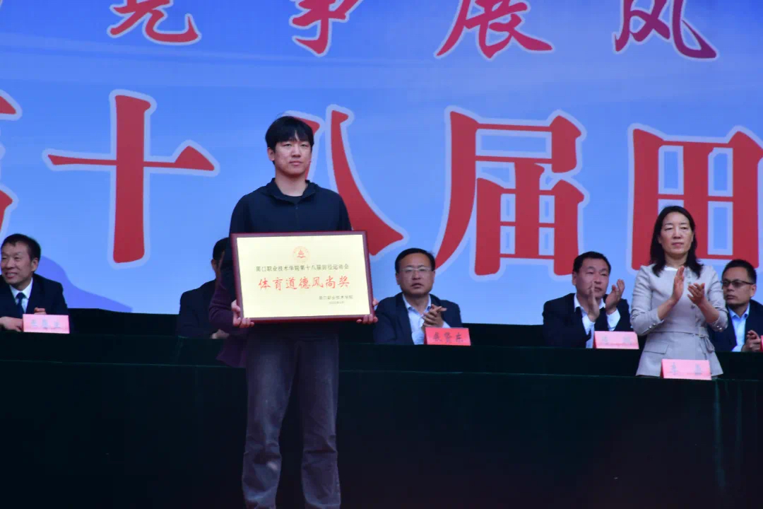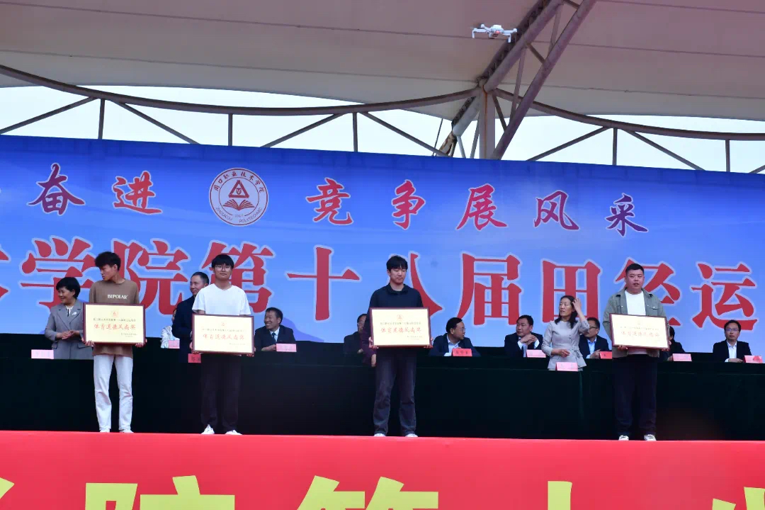 闭幕式开始之际,学校领导发表了一段感人至深的致辞,运动会不仅是体育竞技的舞台,更是磨砺意志、加深友谊、展现自我的重要平台。他鼓励同学们将赛场上所体现的团结合作和勇往直前的精神,带入到日常的学习与生活中,持续为实现个人梦想而努力奋斗。最后,向所有默默奉献的裁判员和工作人员致以最诚挚的敬意与感谢。在这次运动会期间信息工程学院表现优异,荣获体育道德风尚奖。这一荣誉不仅体现了信工学院运动员们在赛场上奋勇拼搏、追求卓越的精神风貌,更彰显了他们在比赛中所展现出的高尚体育道德和团队协作精神。信息工程学院的运动员们用实际行动诠释了“友谊第一,比赛第二”的运动精神,无论是在激烈的竞赛中还是在场下的互动交流里,他们始终保持着积极向上的态度和对对手的尊重。这种精神风貌赢得了裁判员和其他参赛队伍的一致好评。