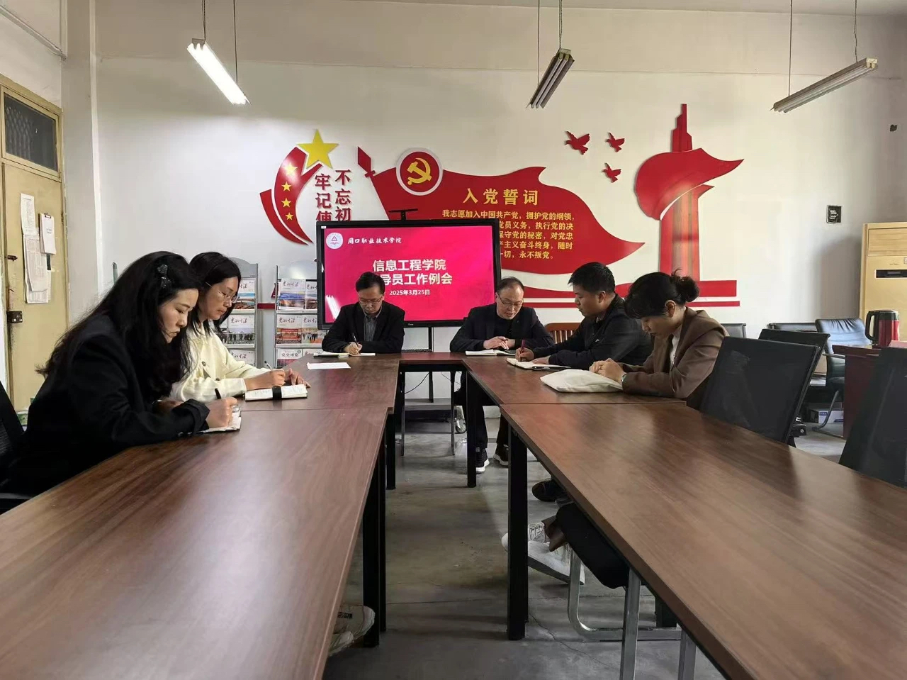 3月25日中午,在学院办公室6140,信息工程学院召开辅导员工作例会。党总支书记宋良鹤,副院长楚书来,学管办主任张矿伟及23、24级辅导员参加了本次会议,会议由楚书来主持。