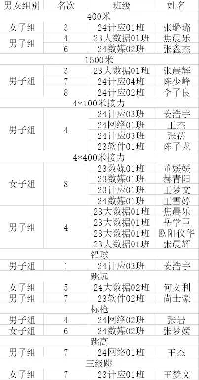 在赛场上,信息工程学院的运动员们英姿飒爽,他们以饱满的热情和顽强的斗志投入到每一场比赛中。无论是短跑、长跑、跳远还是接力赛,每一位选手都全力以赴,展现了极高的竞技水平和团队精神。他们的每一次冲刺、每一次跳跃、每一个转身,无不彰显着青春的活力与激情。在本次运动会的铅球项目中,我院学子姜浩宇以卓越的表现荣膺榜首,展现了非凡的力量与技术。与此同时,在女子400米短跑赛场上,我院的张璐璐同学奋力拼搏,最终荣获第三名,为学院赢得了荣誉。