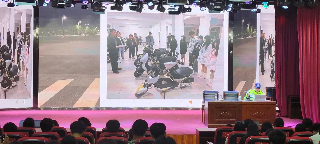 周口市公安局铁骑大队的警官围绕“电动车安全”与“机动车安全”两大主题,通过多样化的形式普及交通法规,旨在提升学生们的交通安全意识和出行能力。特别是在电动车安全主题教育环节,警官结合校园周边的道路交通实际情况,详细讲解了电动车骑行的规范要求,着重强调了佩戴头盔和系好安全带(“一盔一带”)的重要性。他还通过播放真实事故案例视频,生动而直观地展示了闯红灯、逆行及违规载人等行为可能带来的严重后果。在机动车安全主题教育环节,警官详细向师生们普及了机动车行车安全知识,包括礼让行人、禁止酒驾以及规范停车等方面的内容。他特别结合学生们日常出行的情景,强调了乘车时必须系好安全带的重要性,并警示大家切勿做出将头手伸出窗外等危险行为。