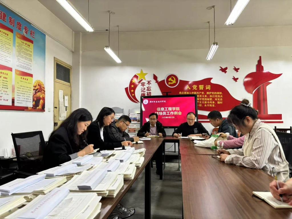 4月22日中午,在学院办公室6140,信息工程学院召开辅导员工作例会。党总支书记宋良鹤,副院长楚书来,学管办主任张矿伟及23、24级辅导员参加了本次会议,会议由楚书来主持。