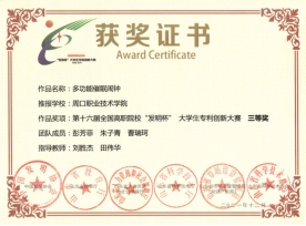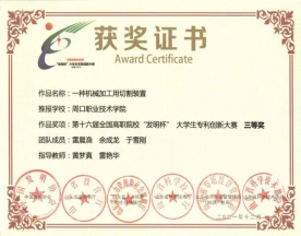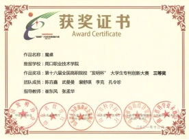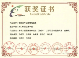 为培养大学生创新实践能力,营造良好的科技创新氛围,普及知识产权基础知识并提高保护意识,搭建大学生创新项目与社会投资对接平台,yl23411永利(集团)有限公司官网汽车与机电工程学院参与第十六届全国高职院校“发明杯”大学生专利创新大赛,并荣获第一名
