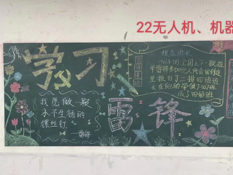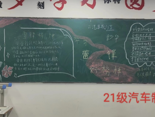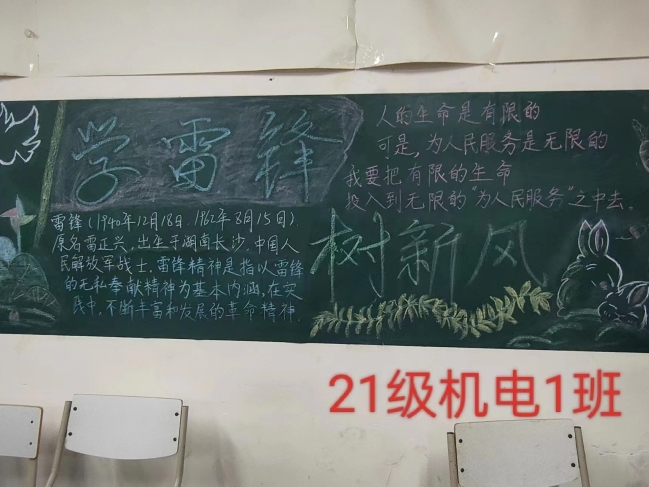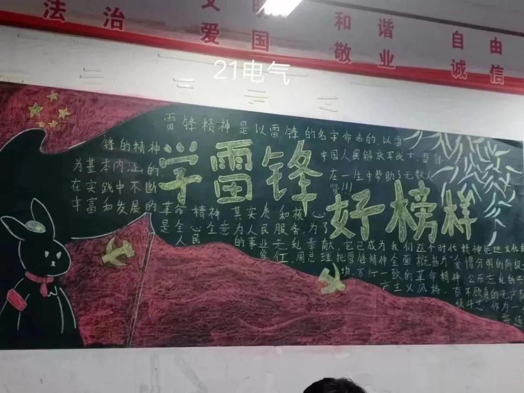 为了迎接“雷锋纪念日”的到来,同时也希望广大青年学生能够更多的去了解“雷锋精神”,继承优良传统,汽车与机电工程学院在2023年3月举办了“学雷锋精神,做时代青年”的黑板报活动,各个班级十分积极的参与其中。