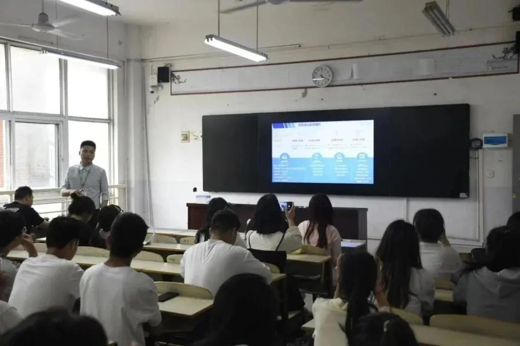 招聘会是由武汉天马微电子集团人力资源部通过PPT形式为同学们进行介绍。“展示了公司主要从事液晶显示器的研发、设计、生产、销售和服务为一体的大型公众上市公司”。涉及领域包含车载显示、仪器仪表、机电一体化等。本次招聘会有效的帮助我院2021届多个专业实习生求职实习需求。