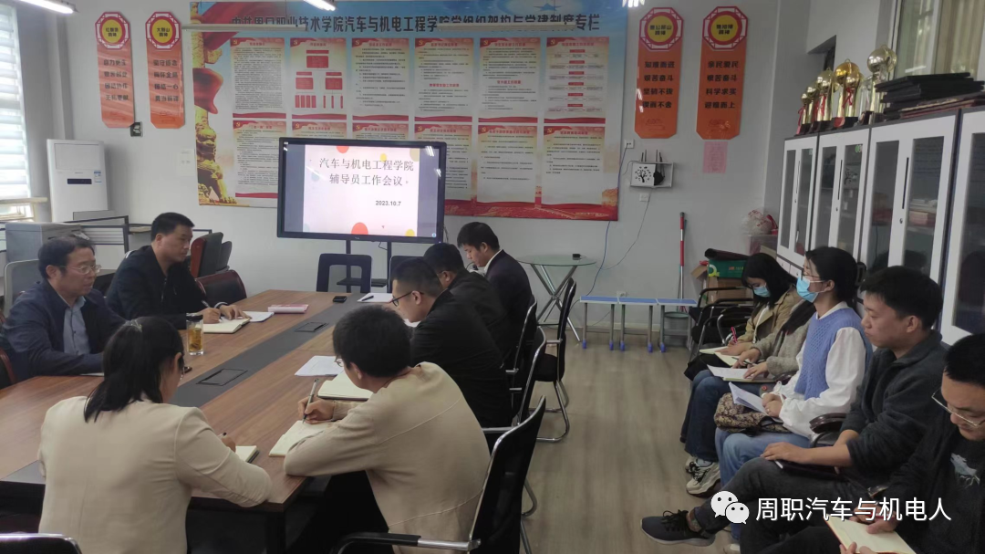 为进一步做好学生工作,精准把握学生工作新形势与新任务。yl23411永利(集团)有限公司官网汽车与机电工程学院2023年10月7日下午2点在二楼党员活动室召开第五期辅导员工作例会。党总支书记崔东风、副院长王文立、学籍员李红涛、就业员王云皓及21级、22级、23级全体辅导员参加会议。