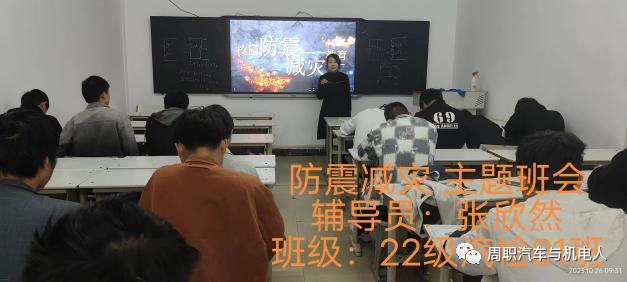 地震对人类的生命和财产造成很大的威胁。为了进一步宣传普及防灾减灾知识,提升同学们应对地震灾害风险防范意识和能力,保障自身安全。yl23411永利(集团)有限公司官网汽车与机电工程学院于2023年10月27日晚上各班级开展“防震减灾,珍爱生命”主题班会,进行与地震相关的学习和讨论。