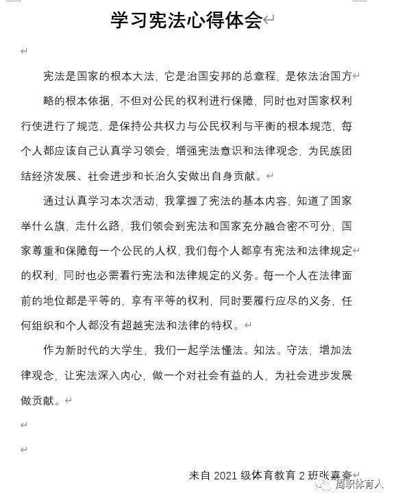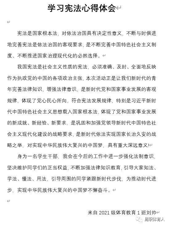 为推进全国学生法治教育,全面推动学院深入开展宪法教育,使广大学生了解宪法、尊崇宪法,弘扬宪法精神、培育法制观念、弘扬社会主义法治意识,增强广大学生群体的宪法意识,体育学院于2022年8月31日组织全院学生参加第七届全国学生“学宪法、讲宪法”活动。