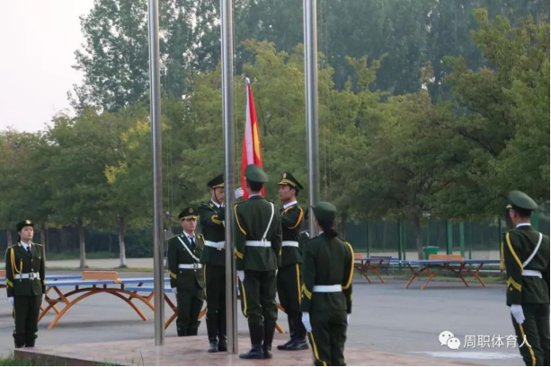 李海磊院长宣布体育学院升国旗仪式正式开始。
