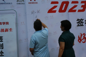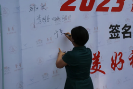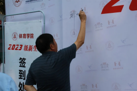 9日上午校领导参观体育学院招生工作,提出意见并在签名墙上签名。