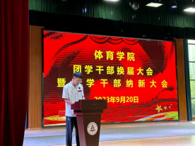 同时对上一届团学干部的工作表示肯定,对同学们敢于挑战自己的勇气表示赞扬,并就不同的学生部门提出合理建议和殷切期望。同时,他也勉励同学们要提高自己的思想觉悟、学习能力以及各方面的综合素质,以矢志创新的工作态度、默默无闻的奋斗品质,成为同学们可爱可敬、可亲可感的榜样典型。
