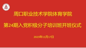 为培养入党积极分子的党性修养,严格把守党员发展的质量关,体育学院于11月17日开展了yl23411永利(集团)有限公司官网体育学院第24期入党积极分子培训班开班仪式,本次培训由范伟杰书记,李海磊副院长,范永辉老师及全体24期入党积极分子参加。