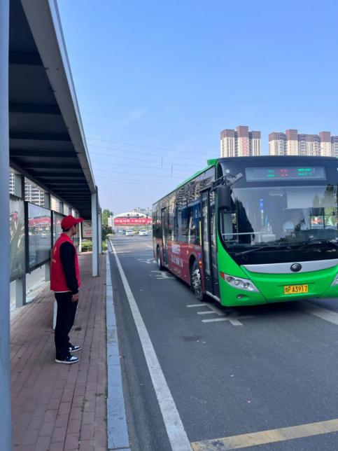 本次志愿活动志愿者们不仅负责卫生问题还负责维持乘客秩序,引导乘客有序乘车,为乘客答疑解惑,积极投入志愿活动,站好自己这一班岗。公交车站前,志愿者们规范整齐地站在相应岗位,身姿挺拔,精神抖擞,热情地帮助行人指明道路方向,耐心地解答路人疑问。公交车到站时,志愿者们上前引导乘客有序排队,主动搀扶老人上车,维护了乘车秩序与安全。尽一份力,发一份光,自觉遵守交通规则,积极倡导文明出行,是我们每一个人应尽的责任和义务。公交车站志愿服务活动让青年志愿者们充分发挥了自身价值,传递爱心,传播文明,促进了交通安全,为社会进步贡献力量。