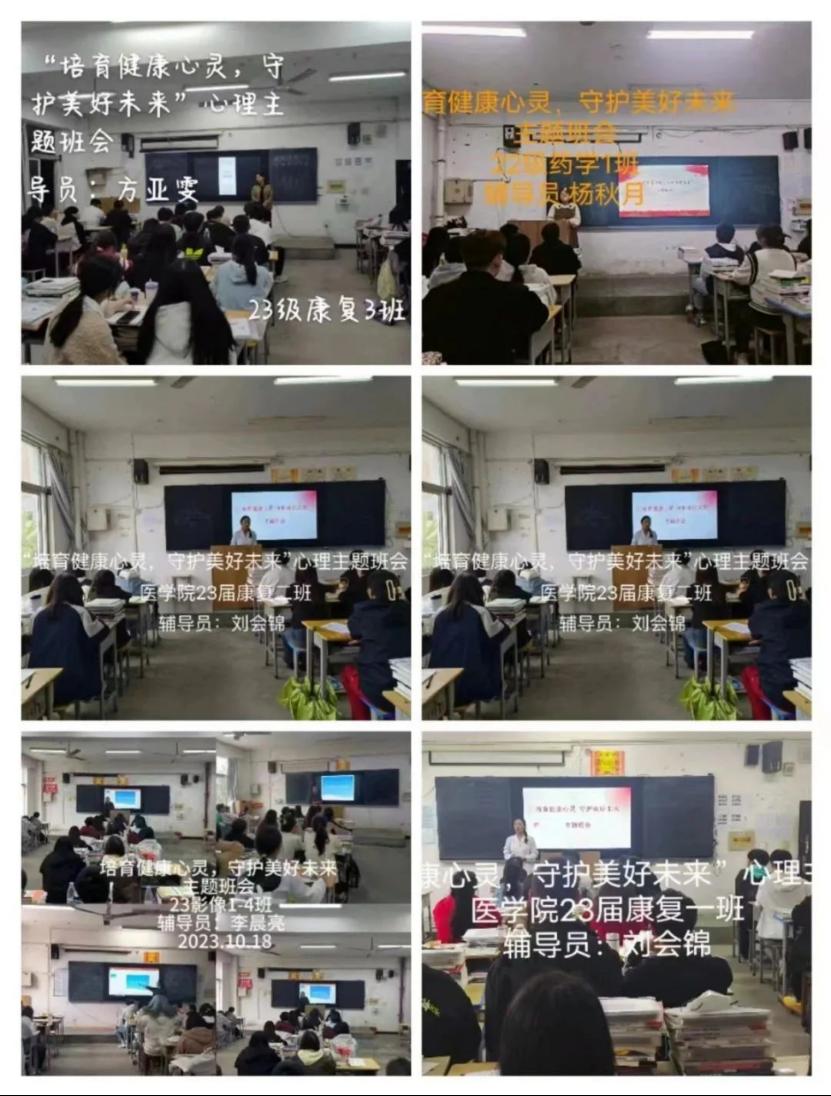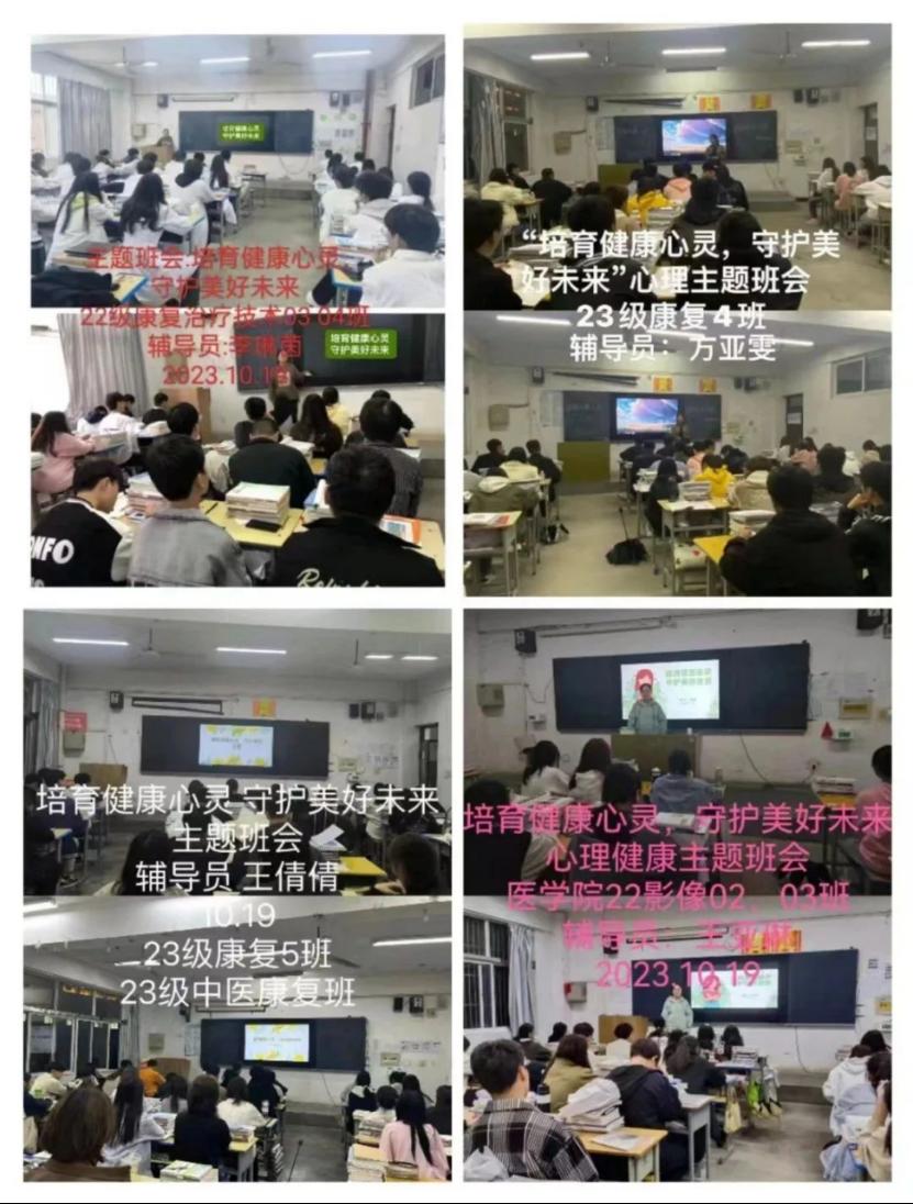 学校心理健康教育是落实立德树人根本任务,培养和践行社会主义核心价值观的重要途径。为进一步加强我院大学生心理健康教育工作,提升心理育人质量,培养学生良好心理品质,促进学生身心健康成长。医学院于10月19日下午组织开展心理健康教育宣传周活动,各班举行了“培育健康心灵,守护美好未来”的主题班会。
