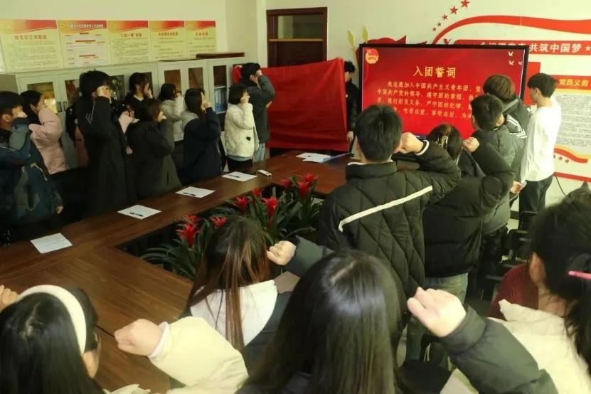 会议最后,全体人员在团旗的照耀下重温入团誓词。
