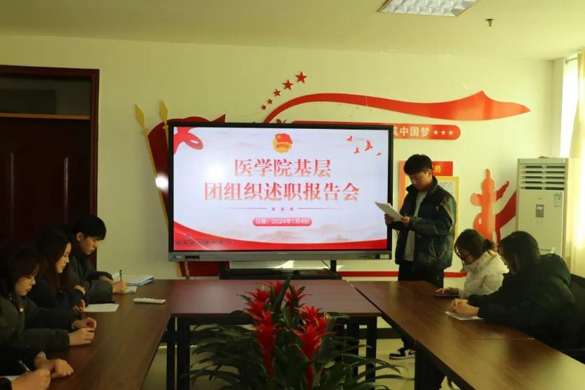 为深入学习贯彻落实党的二十大精神和习近平总书记关于青年工作的重要思想,紧紧围绕团的根本任务、政治责任、工作主线,压实基层团组织书记责任,增强政治性、先进性,推动基层团的组织力、引领力、服务力。2024年1月4日,医学院于行政楼4楼党员活动室404举行了基层团组织述职报告会议,团总支书记聂蕾、各班团支书参加本次会议,本次会议由学生骨干水冰冰主持。