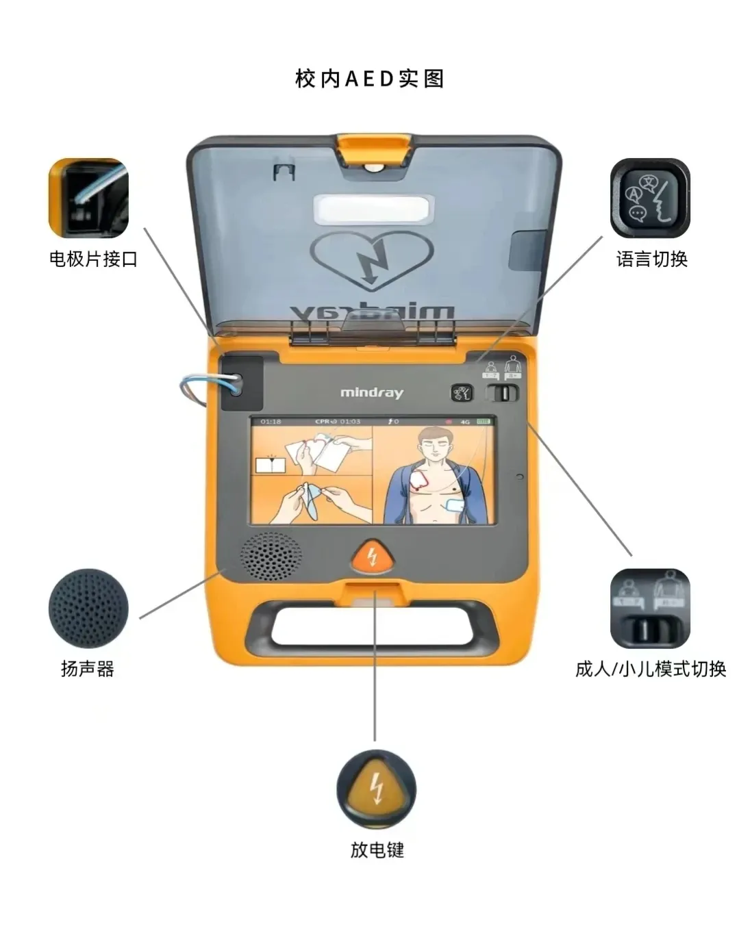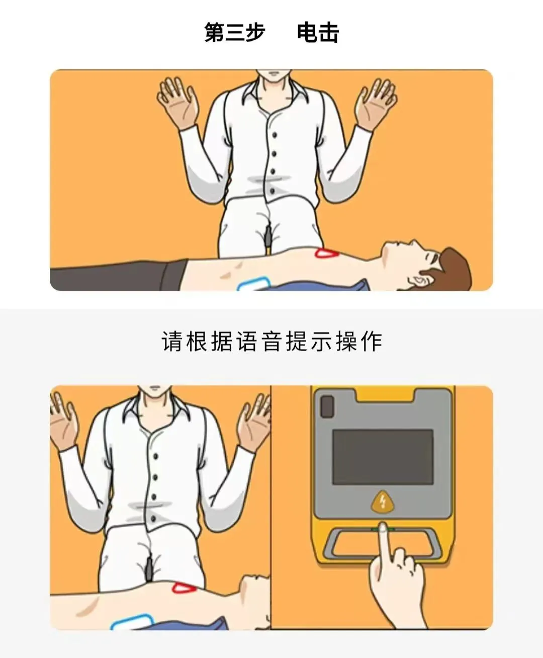 AED内配有语音提示和屏幕显示,每一步都有语音提示,按照提示操作即可。