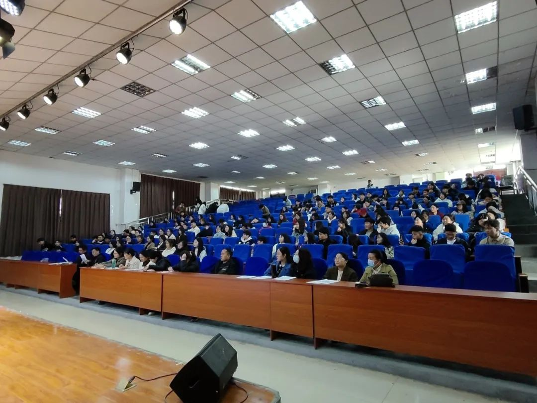为贯彻落实习近平文化思想和习近平总书记关于青年工作的重要讲话精神,引导广大青年学理论、读经典、促实干,医学院团总支于4月25日在报告厅举办“青春心向党,奋进新时代”青年读书分享会。医学院党总支书记苑建伟、副院长王向华、学管办主任聂蕾及全体辅导员共同观看青年读书分享会。分享会由院团总支副书记张浩然主持,22、23级全体学生会和团干参加。