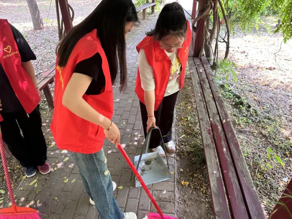活动中,各班团员代表手持扫帚、簸箕等工具,充分发扬不怕脏、不怕累的优良作风,他们分工协作、干劲十足,对校园内主干道及绿化带里的白色垃圾、果皮纸屑、枯枝败叶等杂物进行集中清理,确保不留任何卫生死角。