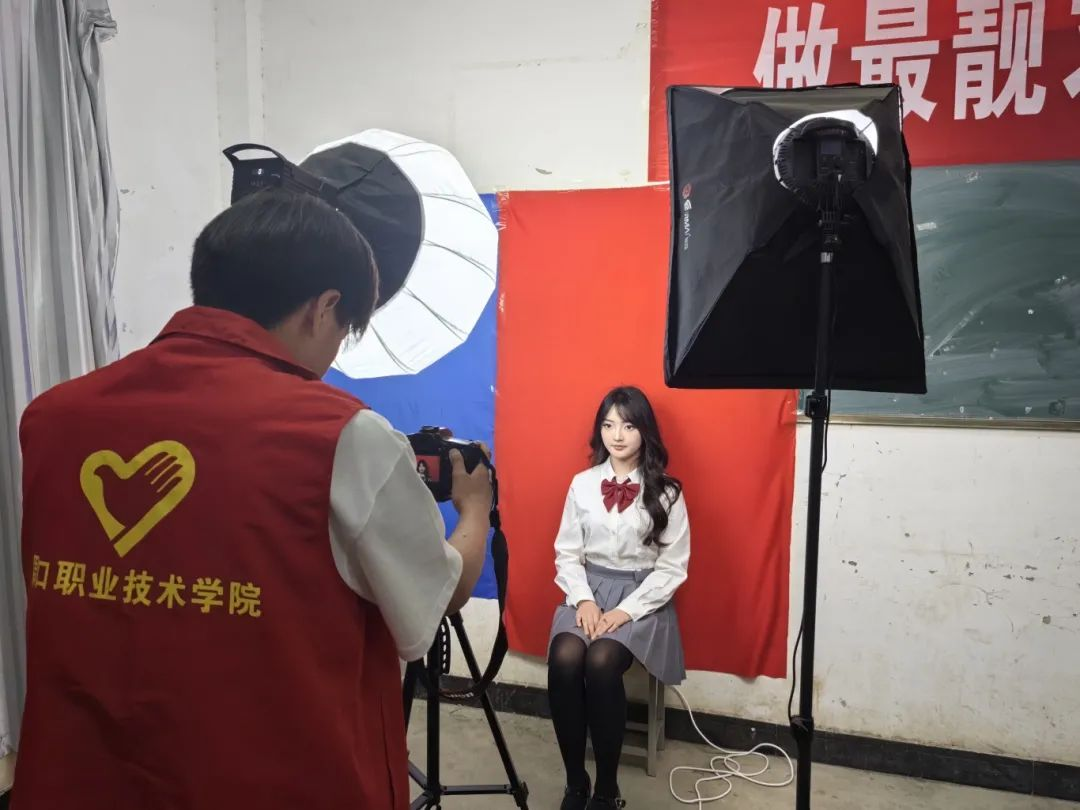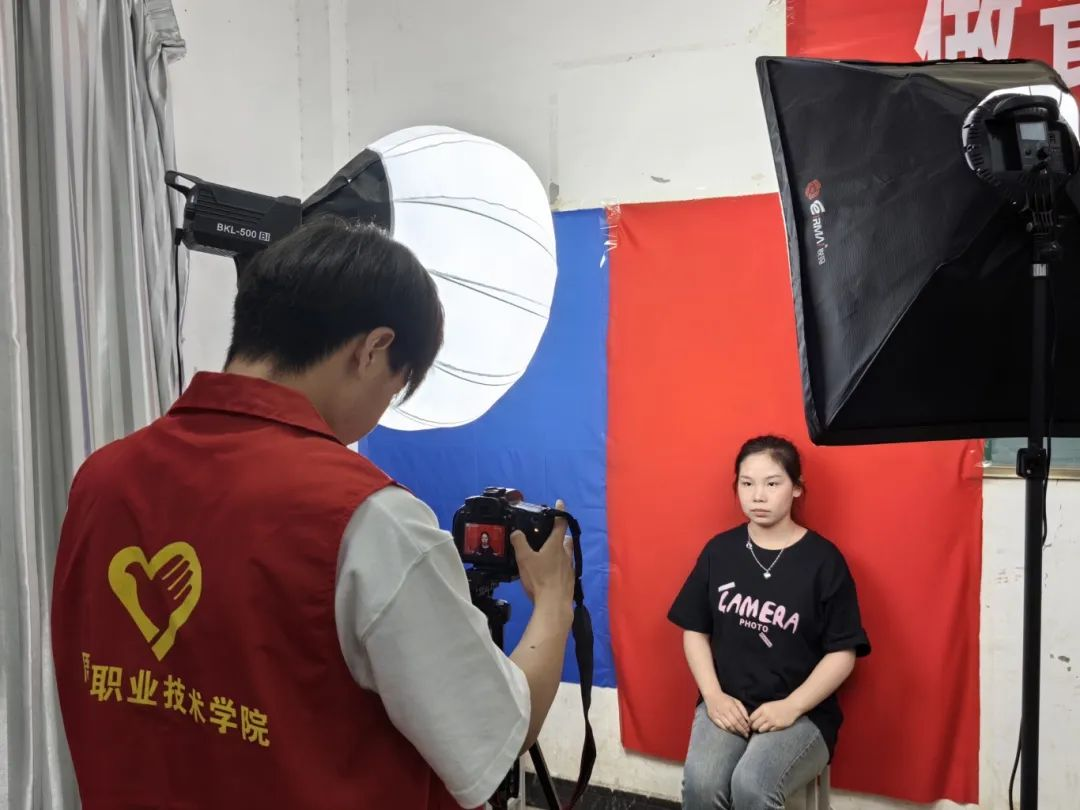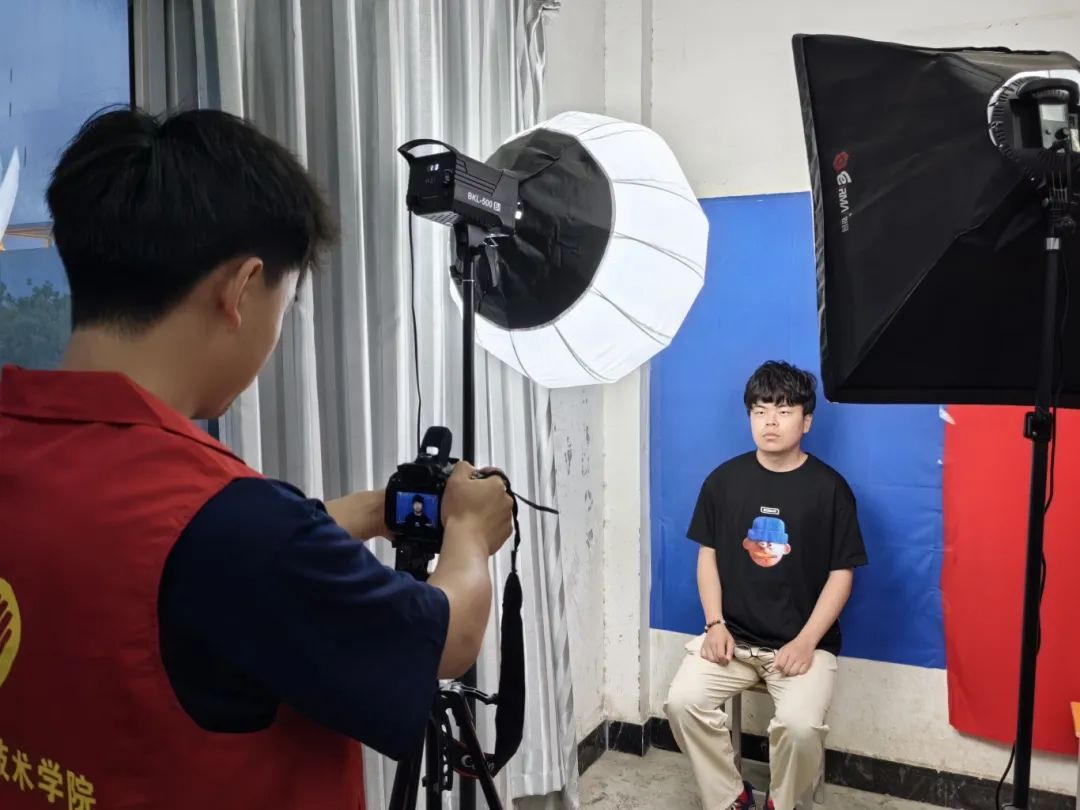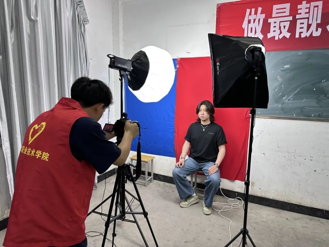活动开始前,入党积极分子们早早就位,布置相机、幕布、补光灯等设备。在拍摄过程中,他们主动帮助同学们整理仪表仪容,热情细心地提醒同学们拍摄注意事项,现场拍摄气氛热烈而融洽。