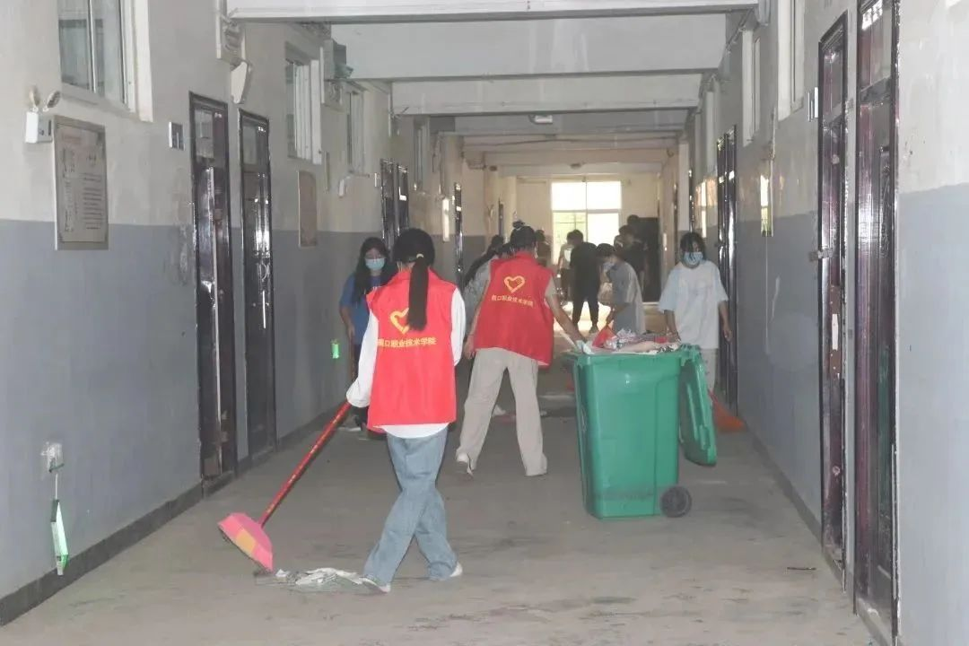 医学院师生拿起抹布、拖把等工具到各自的班级和宿舍开始打扫。从扫地到擦洗,不放过任何死角,充分发挥了不怕累、不怕脏、不怕苦的奉献精神。