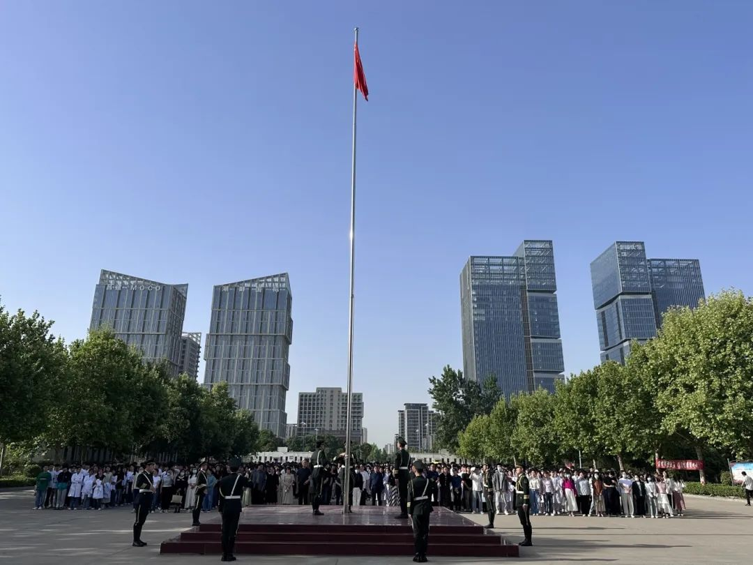 迎着朝阳,护旗手们迈着铿锵有力、整齐划一的步伐护送五星红旗至国旗台。伴随着激昂雄壮的国歌,五星红旗在晨光中冉冉升起,全体师生向国旗行注目礼。5月13日,医学院举行了以“勤俭节约,珍惜粮食“为主题的升旗仪式。医学院全体副科级以上干部、辅导员、全体在校学生参加本次升旗仪式。