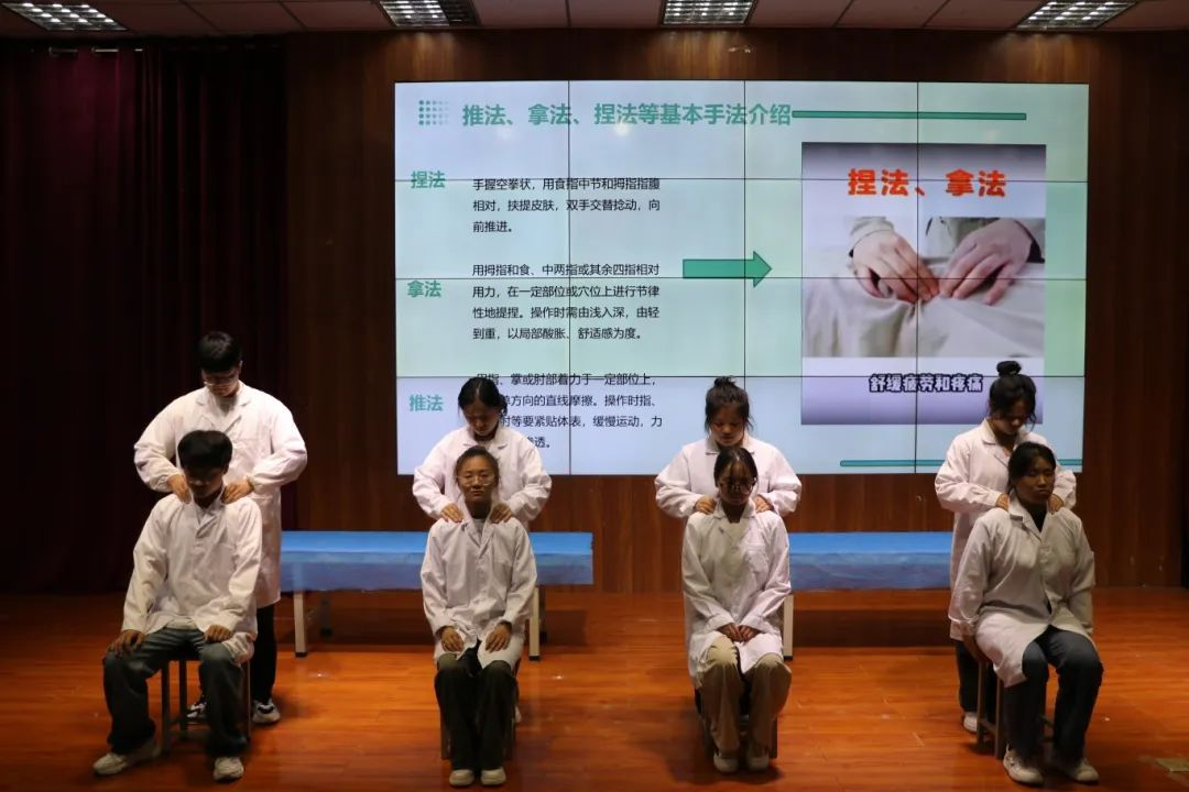 在本次的宣讲活动中,不仅使同学们学习到了中医推拿方面的知识,康复协会的同学们还在推拿按摩体验环节为在场同学们做了中医推拿按摩,使同学们切身体会了中医推拿文化的博大精深和魅力。