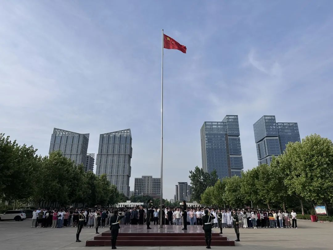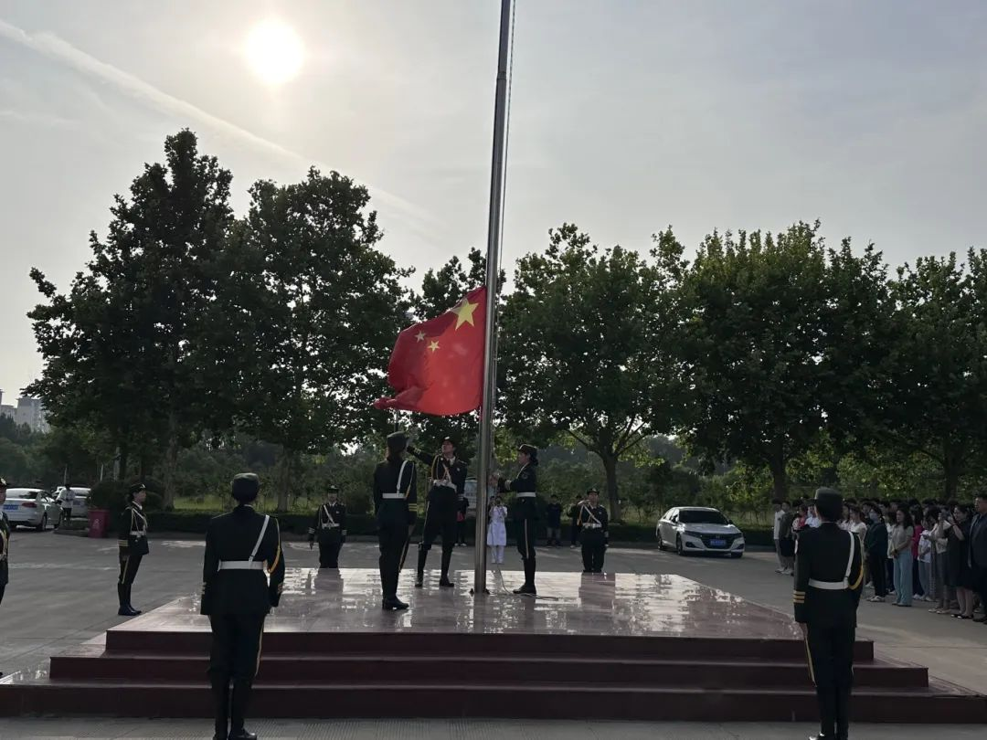 迎着清风,沐着朝阳,国旗护卫队队员们迈着铿锵有力的步伐护卫国旗入场。伴着激昂的《义勇军进行曲》,五星红旗冉冉升起,全体师生面向国旗行注目礼,在熠熠晨光中迎风飘扬。国旗在他们的眼中高高飘扬,那是他们共同的信仰和追求。