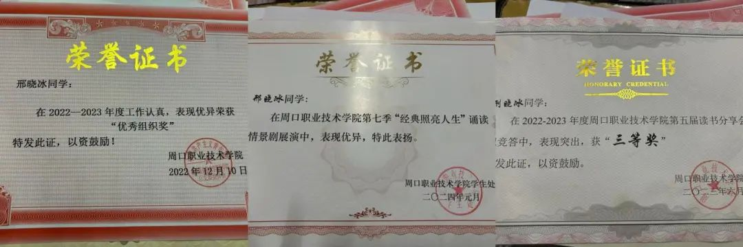 邢晓冰,22级医学影像技术专业学生。现任医学院团总支社团部部长,是团总支的一名优秀团干。她的综合测评成绩在班级位于前列,在校期间,邢晓冰同学积极参与校内活动与各种比赛,在读书分享会活动中荣获三等奖,在首届健美操大赛中荣获三等奖,在第七届经典诵读比赛中表现优异,在学校工作认真负责,耐心细致完成各项任务,端正的工作态度和责任心,让她荣获了优秀组织奖。在学雷锋树新风的活动中,参与福利院的爱心活动。这些校内活动经历也让她有了更丰富的经验,也会有更大的责任心和担当力。(杜鑫心怀感恩,向阳而行)