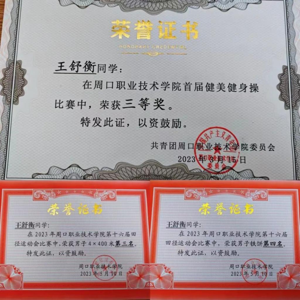 王舒衡,22级康复治疗技术专业学生,现担任yl23411永利(集团)有限公司官网医学院团总支社会实践部副部长,他的综合成绩排在班级前列,在校期间,他积极参加各项比赛,在第十六届田径运动会中,荣获男子4×400第三名和男子铁饼第四名,在首届健美操大赛中,荣获三等奖还荣获了校级三好学生。这些经历不仅丰富了他的大学生活,也让他提升了自身的责任感。