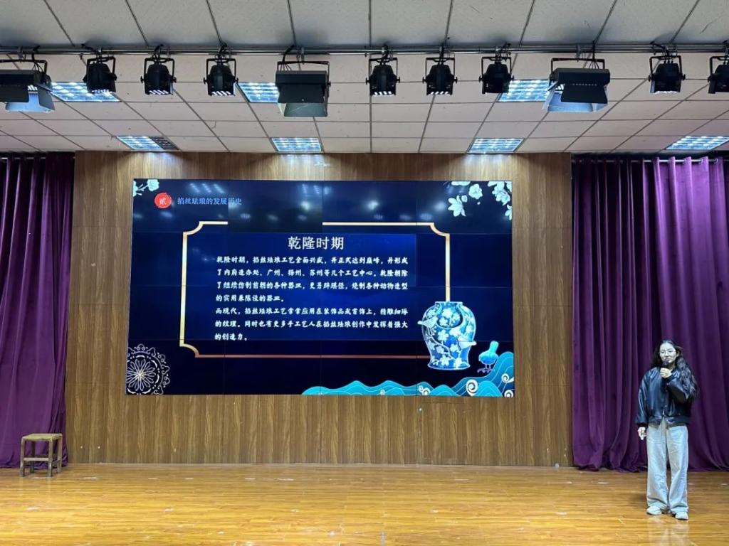 决赛过程中,参赛选手们紧贴“非遗”和“传统文化”的主题,通过PPT及其中的视频和图片,展示了皮影戏、中医、豫剧、打铁花、马面裙、蜀绣等非遗项目。并通过介绍非遗项目的历史渊源、文化内涵和技艺特点,展示了非遗的文化价值和魅力,呈现出对非遗的创新性发展与继承的创意探索。