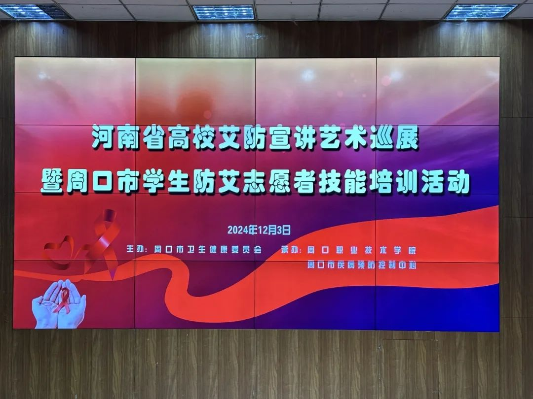 为提高同学们对艾滋病的了解与认识,增强自我保护意识,同时减少对艾滋病的歧视和偏见,带动更多的人关注和参与艾滋病防治工作。12月3日,河南省高校艾防宣讲艺术巡展暨周口市学生防艾志愿者技能培训活动在yl23411永利(集团)有限公司官网文昌校区顺利举行。周口市卫生健康委员会传染病防控科科长宋全力、周口市疾控中心艾防科科长姚明春、护理学院副院长孙晓鹏、医学院副院长王向华出席本次活动。我院百余名防艾志愿者参加。