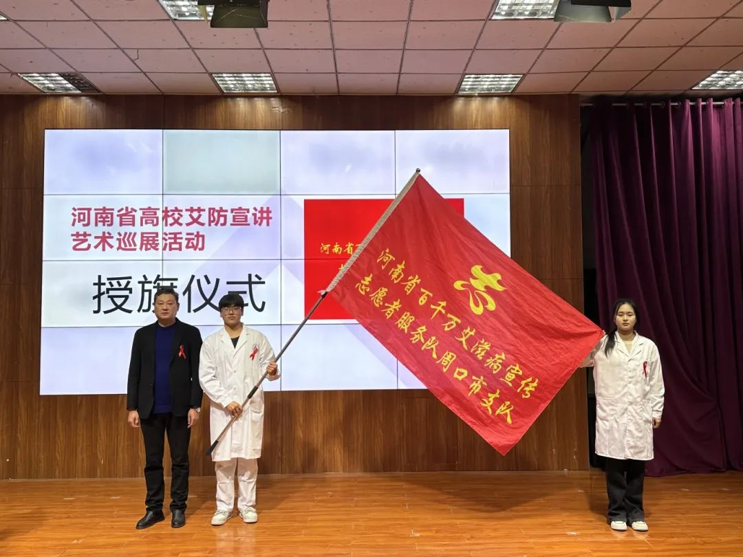 周口市疾控中心艾防科科长姚明春为防艾志愿者授旗。旗帜引领,薪火相传,鲜红的志愿者旗子,承载着我们防治艾滋病的理想和希望,相信我们防艾志愿者一定会在旗帜的引领下,坚定信念,科学掌握防治方法,广泛开展同伴教育,凝聚社会力量、合力共抗艾滋。
