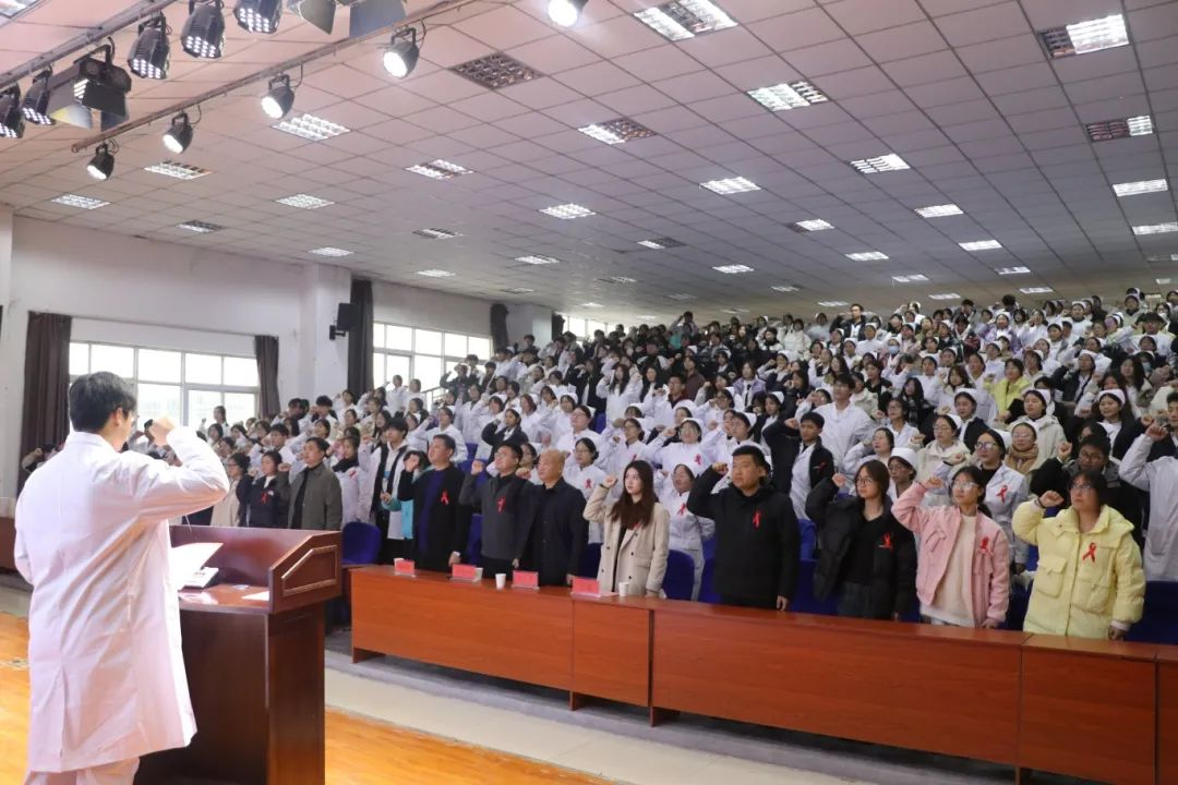 护理学院防艾志愿者代表带领大家进行集体宣誓。